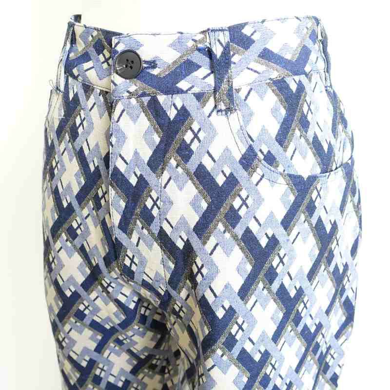 他の画像を見る FAFATT ゴブランフレアパンツ ブルー 販売価格 ¥ 7,480 税込 在庫切れ 人気のゴブラン生地で仕上げたフレアパンツです。青色のひし形柄が特徴的です。ゴブラン特有の硬めな生地感でフレアが綺麗に出るパンツになっています。スウェットなどのプルオーバートップスに合わせるのがおすすめです。また、無地のシャツや長丈のジャケットなどに合わせるのも、レイヤード出来ておしゃれです。細身なので、女性にも履いて頂けます。個性的なコーディネートに是非取り入れてください。 詳細を見る お気に入りに登録する