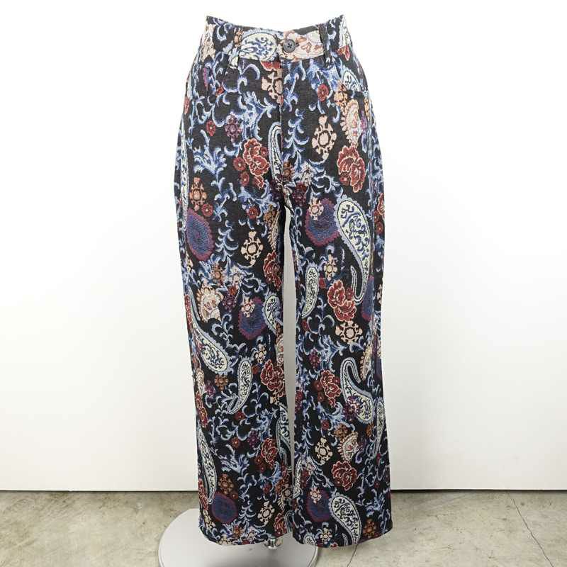 他の画像を見る FAFATT ゴブランフレアパンツ ブラック 販売価格 ¥ 7,480 税込 人気のゴブラン生地で仕上げたフレアパンツです。大きめのペイズリー柄が特徴的です。ゴブラン特有の硬めな生地感でフレアが綺麗に出るパンツになっています。スウェットなどのプルオーバートップスに合わせるのがおすすめです。また無地のシャツや長丈のジャケットなどに合わせるのも、レイヤード出来ておしゃれです。黒が基調になっているので、男性にも履いて頂きやすいデザインとなっていますが、細身なので女性にも履いて頂けます。個性的なコーディネートに是非取り入れてください。 カートに入れる お気に入りに登録する