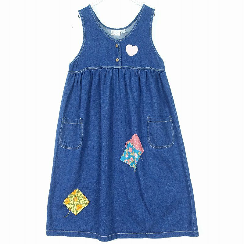 古着 90s パッチワーク デニム ノースリーブワンピース
