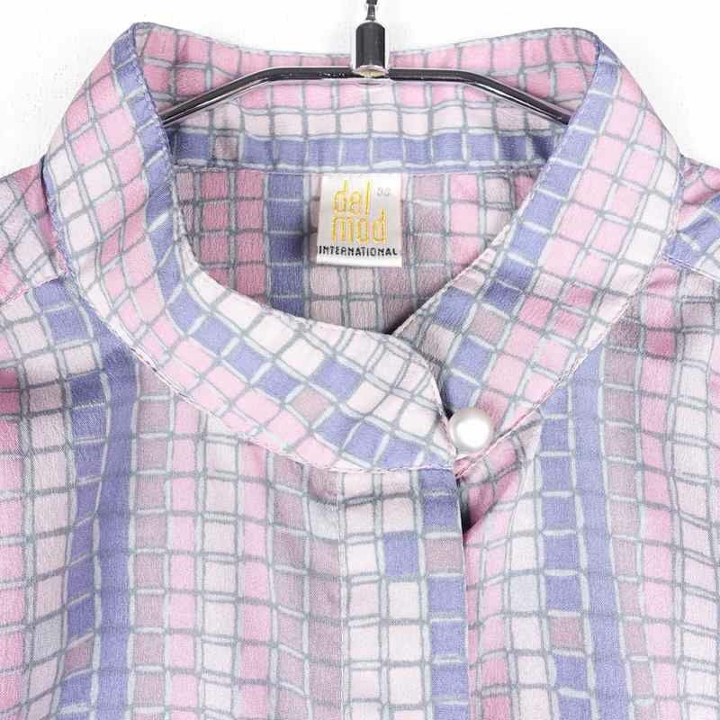 古着 幾何学柄 ノーカラーシャツ