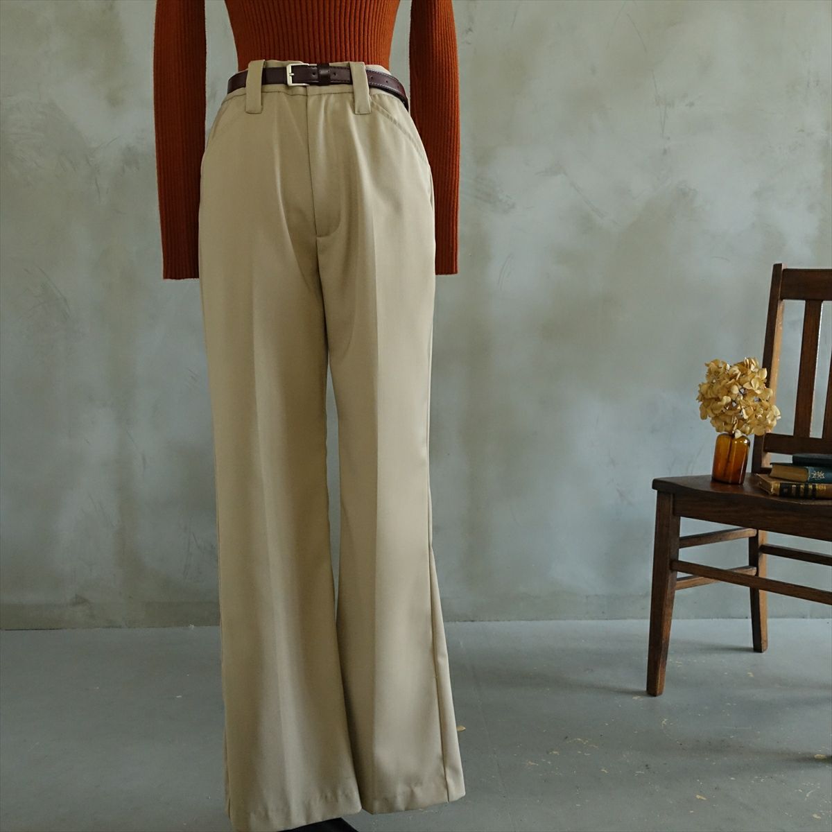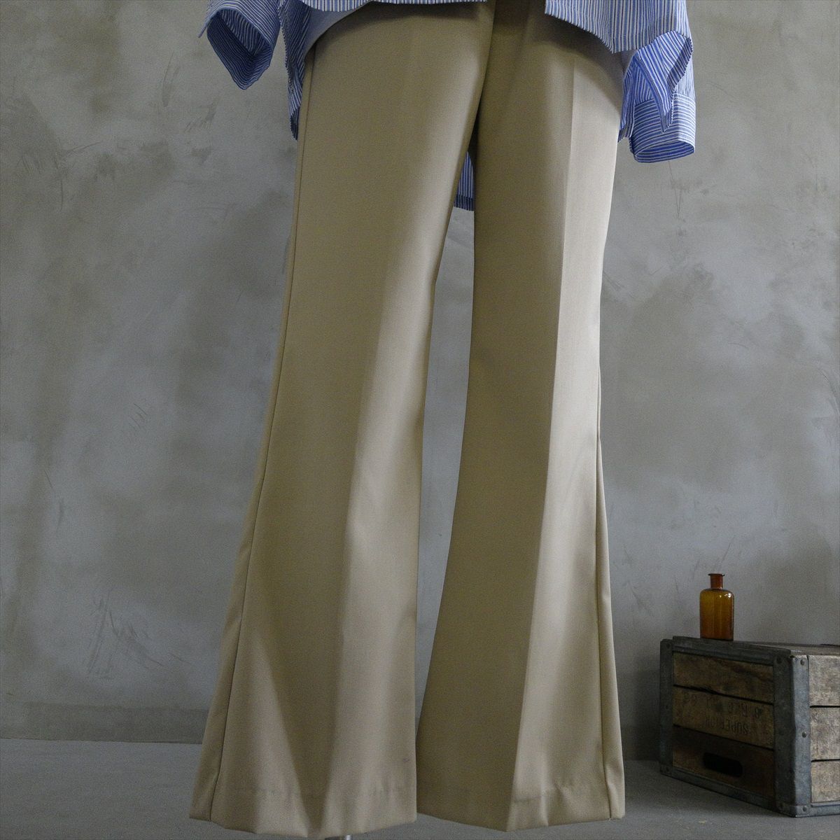 Fafatt ファファット センタープレス フレアパンツ ベージュ