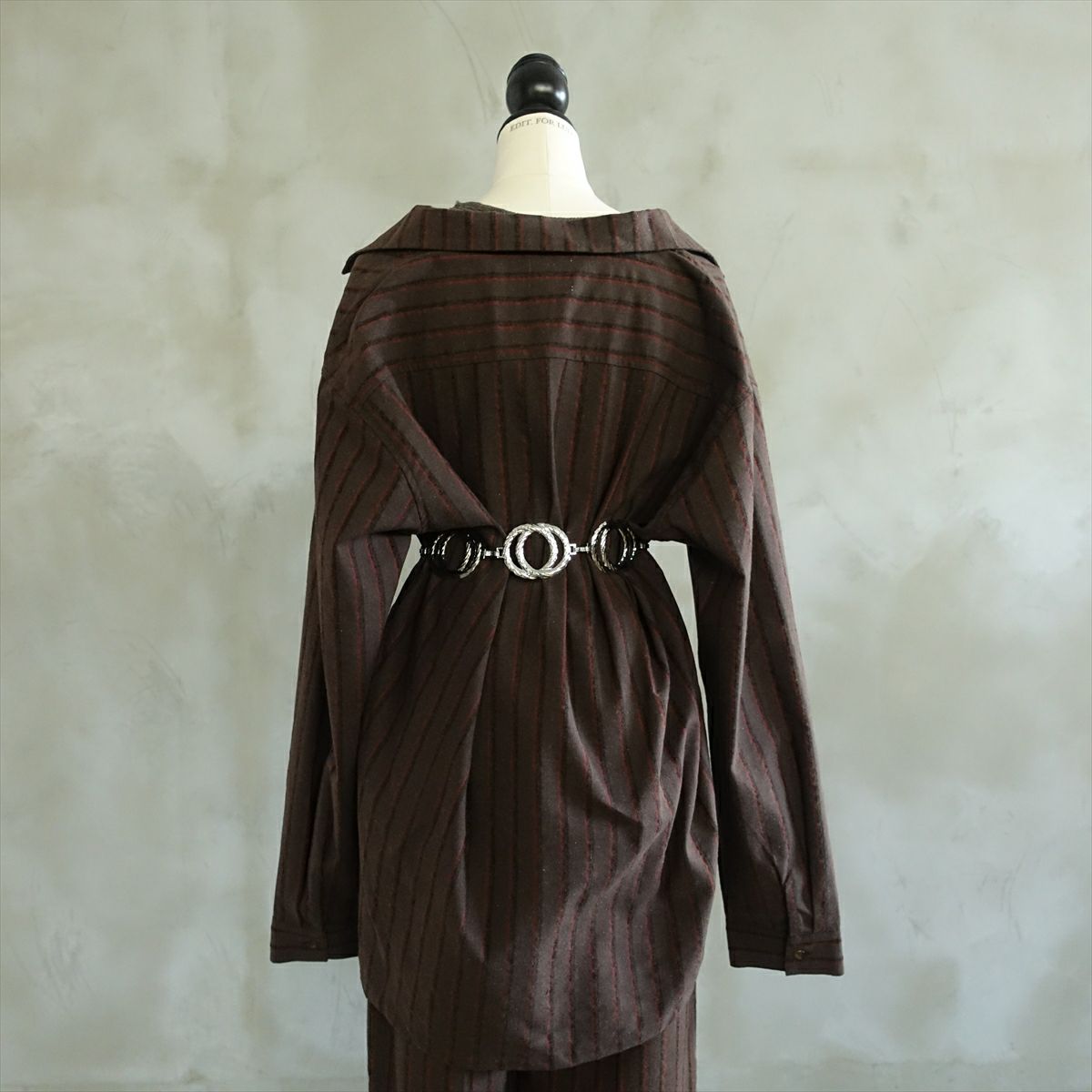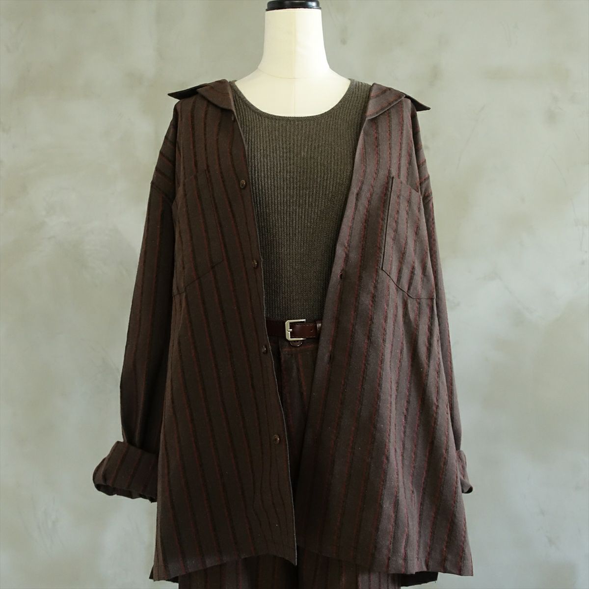 Fafatt ファファット オープンカラー ストライプシャツ ブラウン