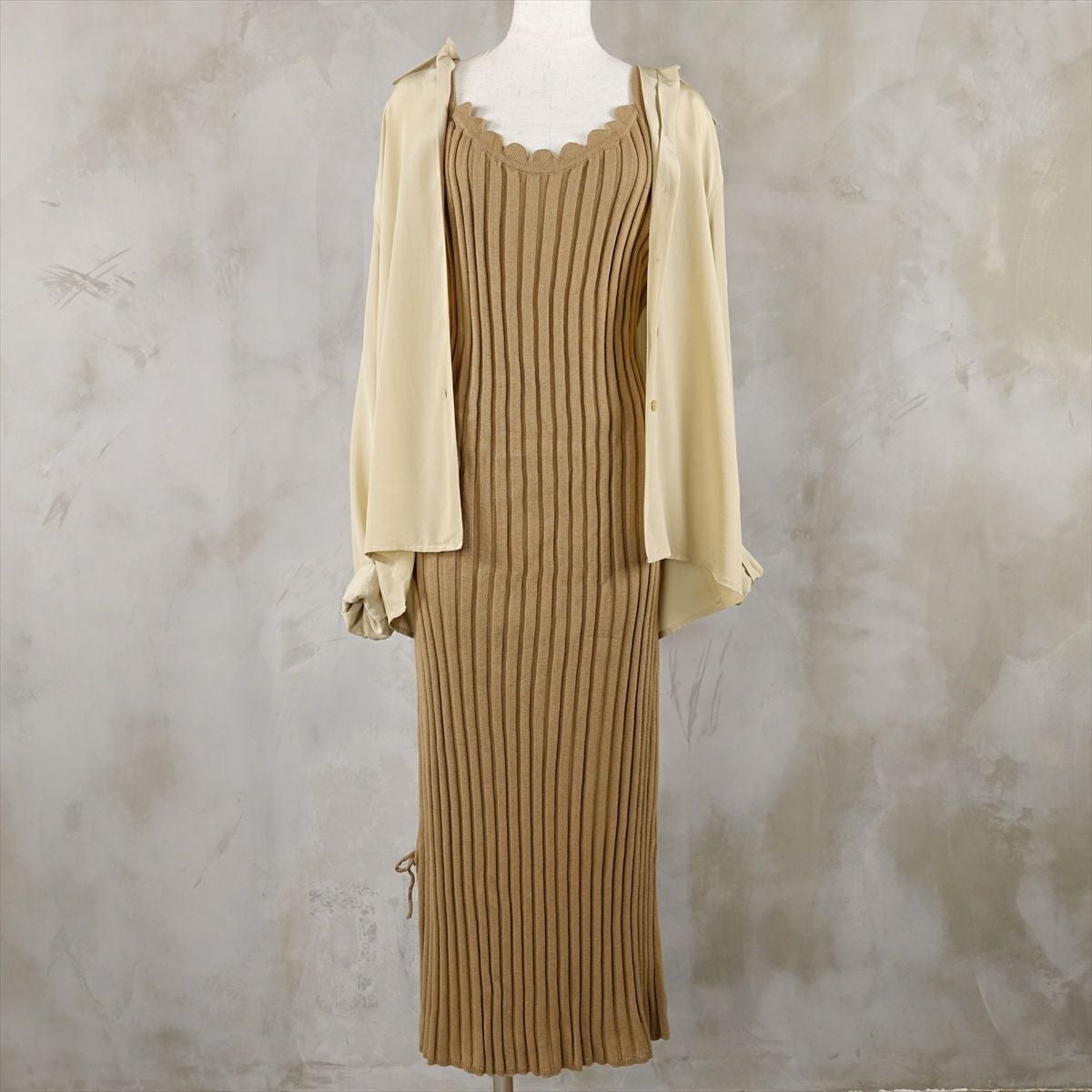 他の画像を見る fafatt ファファット リブ ニットワンピース 販売価格 ¥ 9,680 税込 ウエスト位置の紐が高いのとストライプのニットと相まってスタイルを良く見せてくれます。タイトなシルエットですが柔らかく伸びるので着心地良く着て頂けます。ブーツとの相性抜群です カートに入れる お気に入りに登録する
