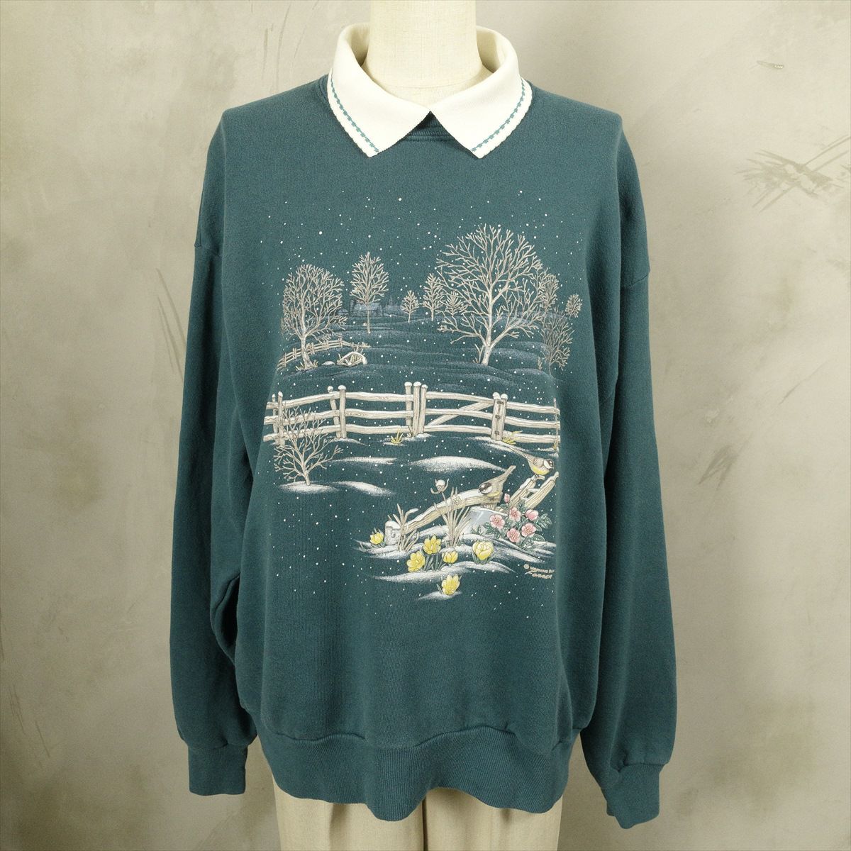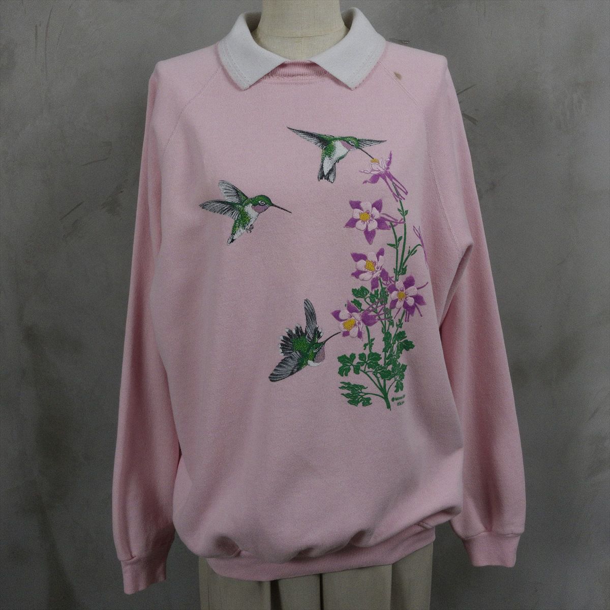 古着 襟付き 鳥モチーフ スウェット