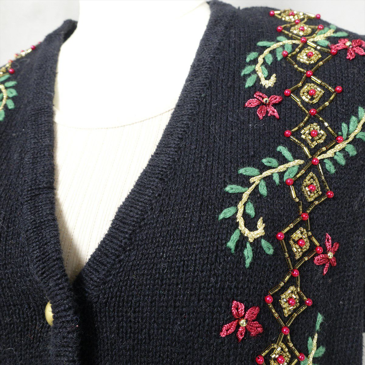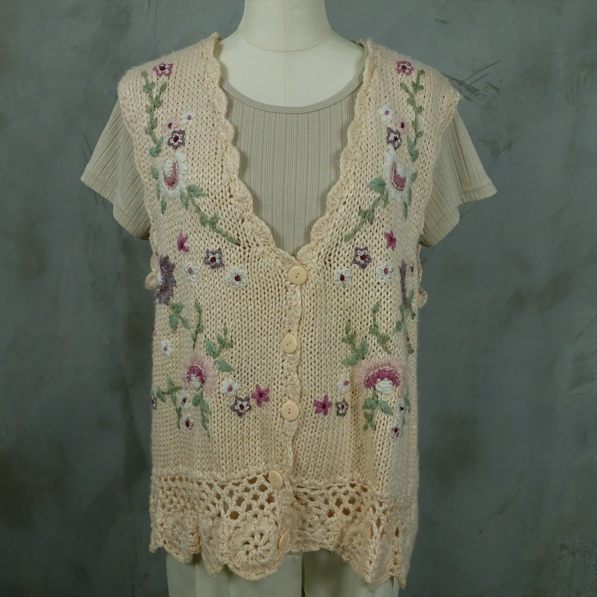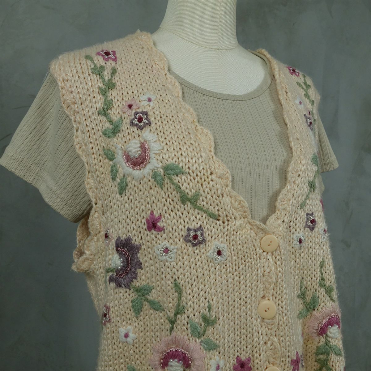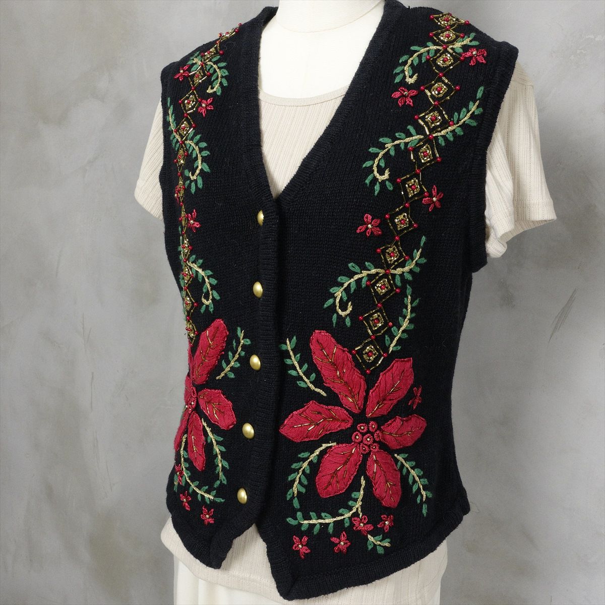古着 花柄 ビーズ付き ニットベスト