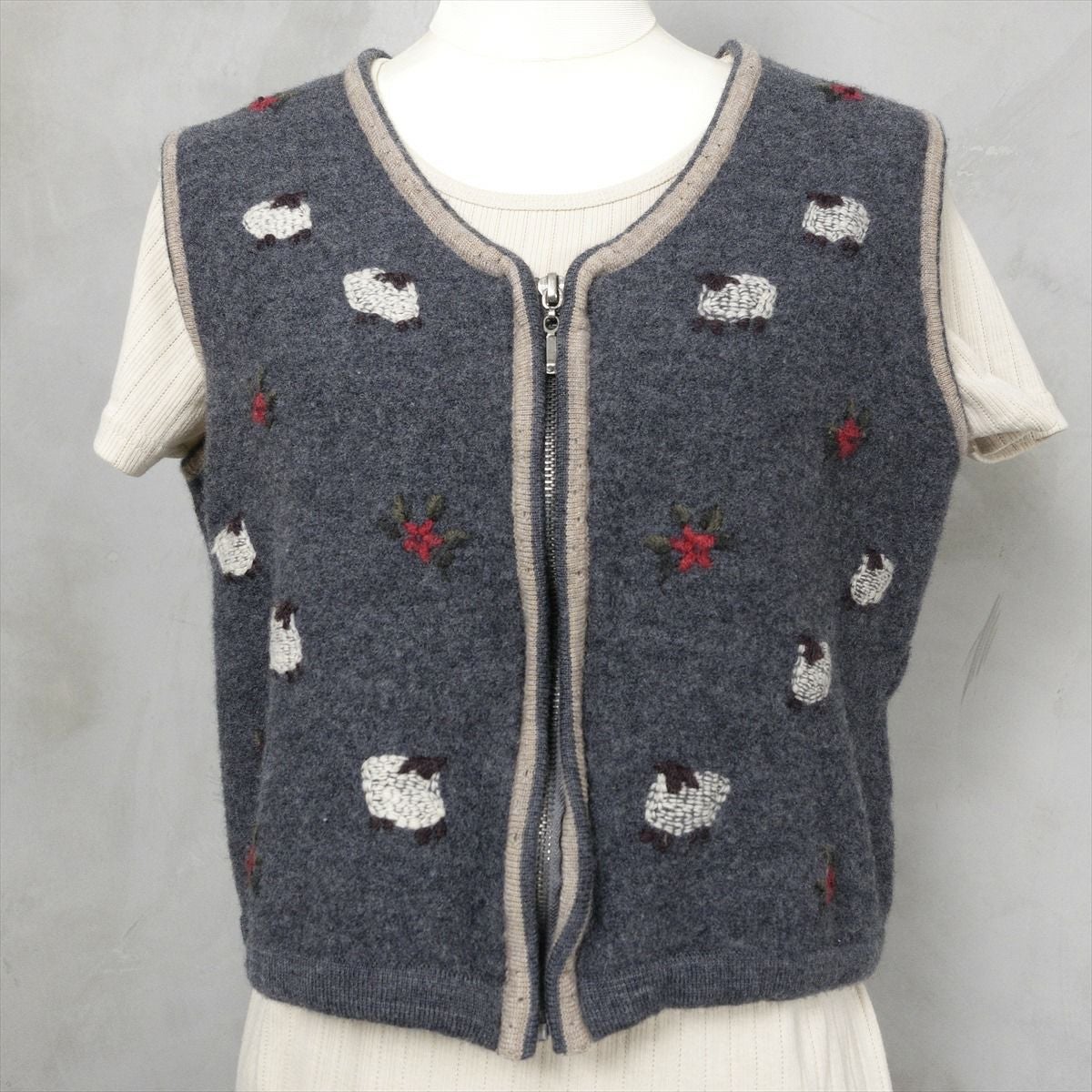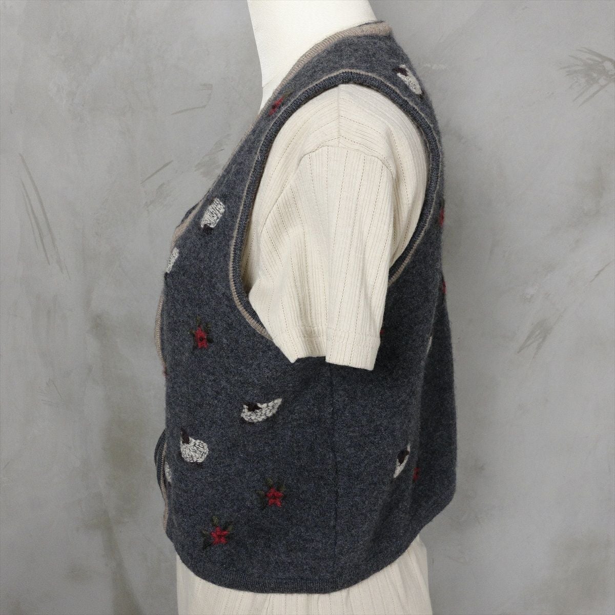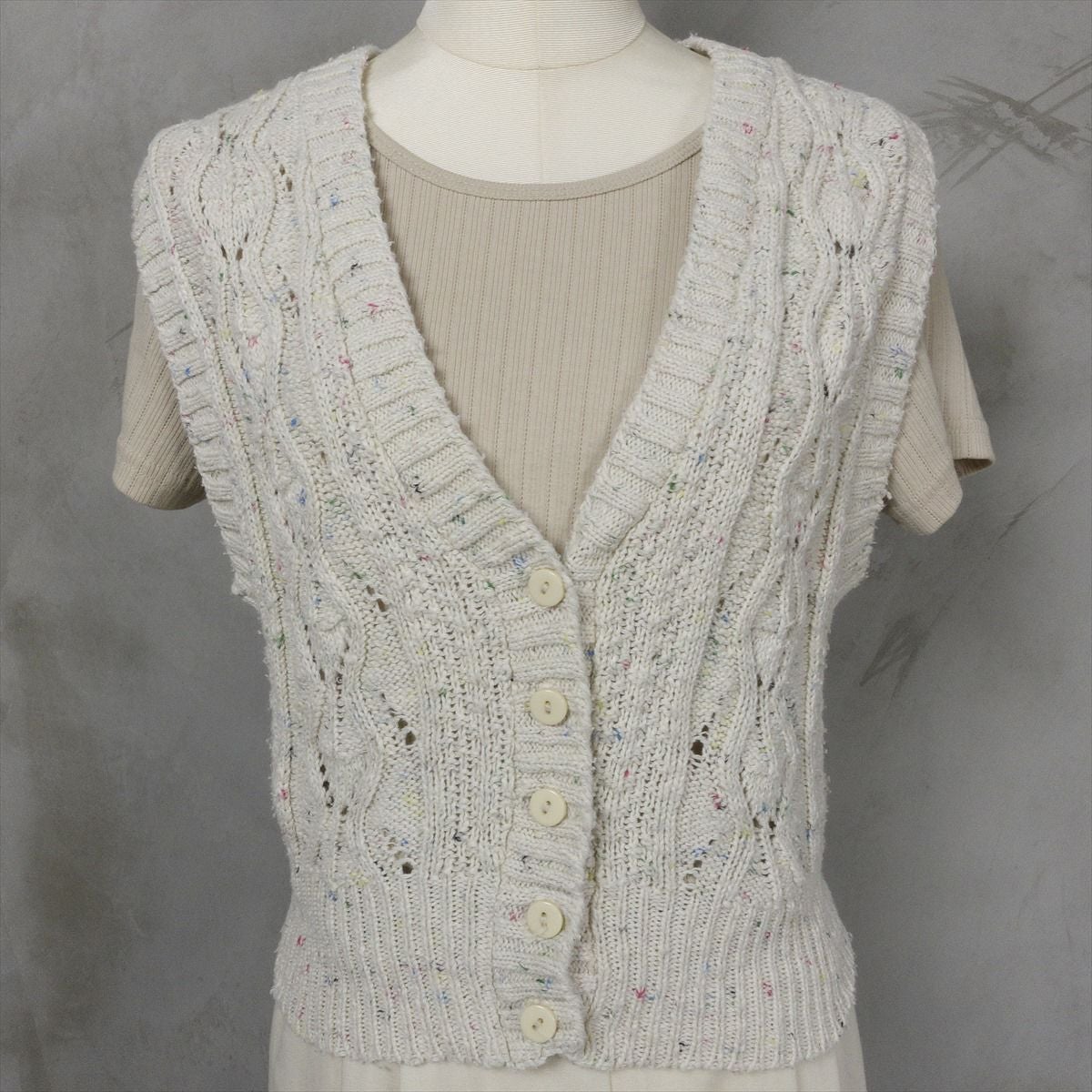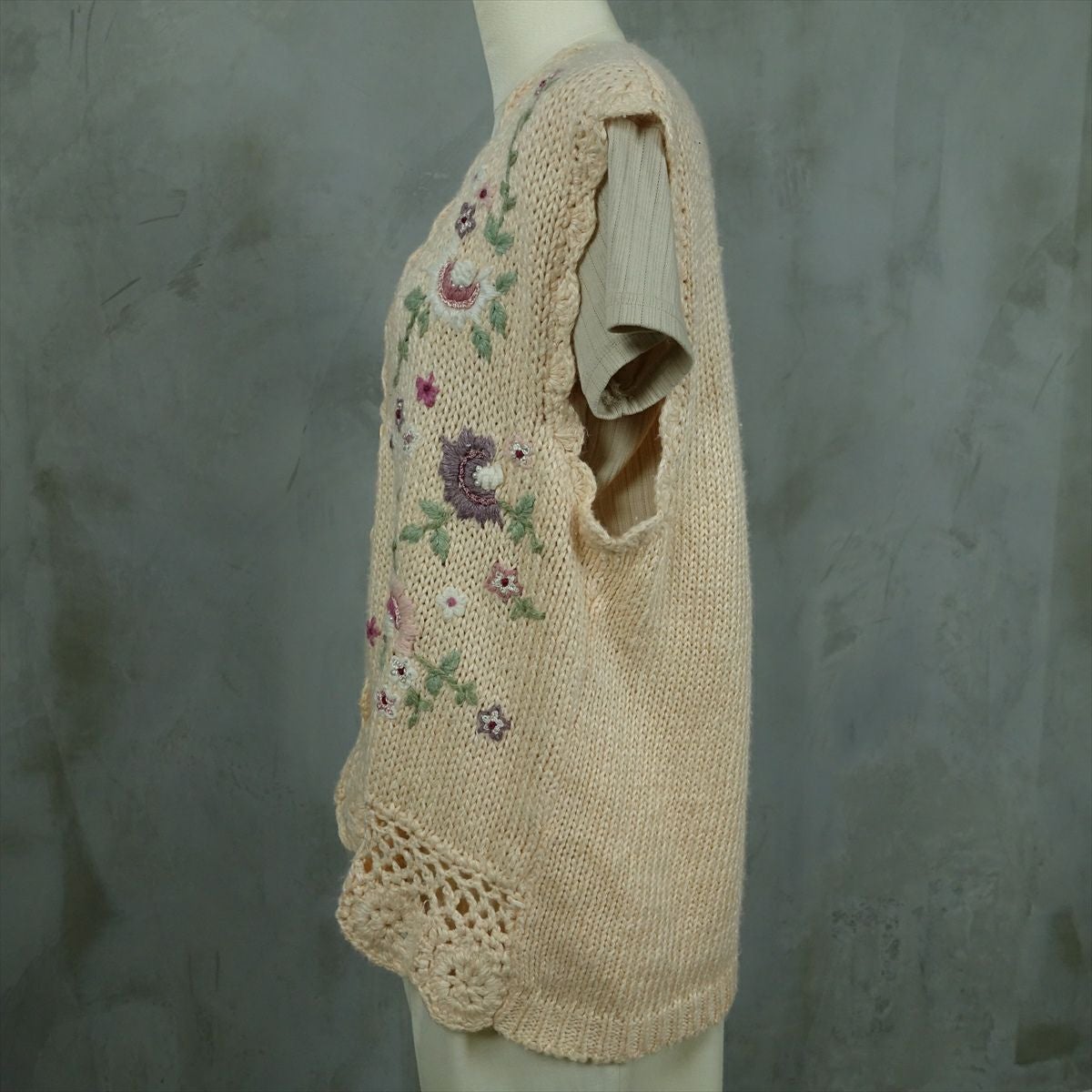 古着 花柄 ビーズ付き ニットベスト