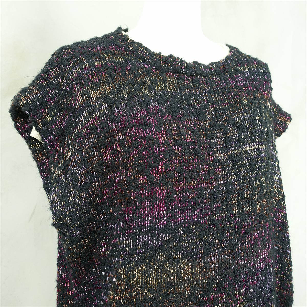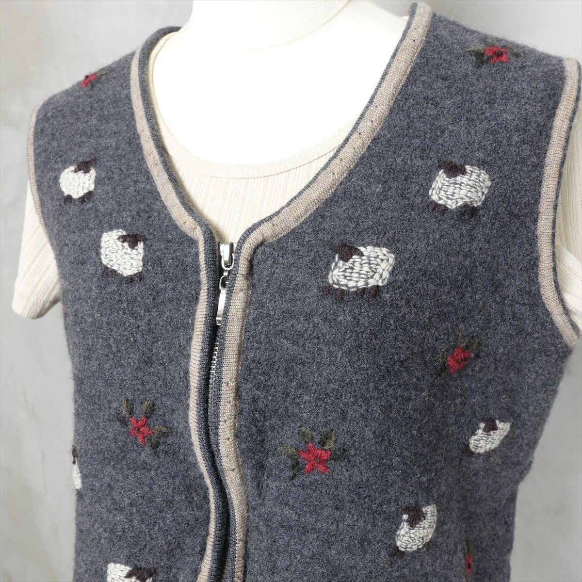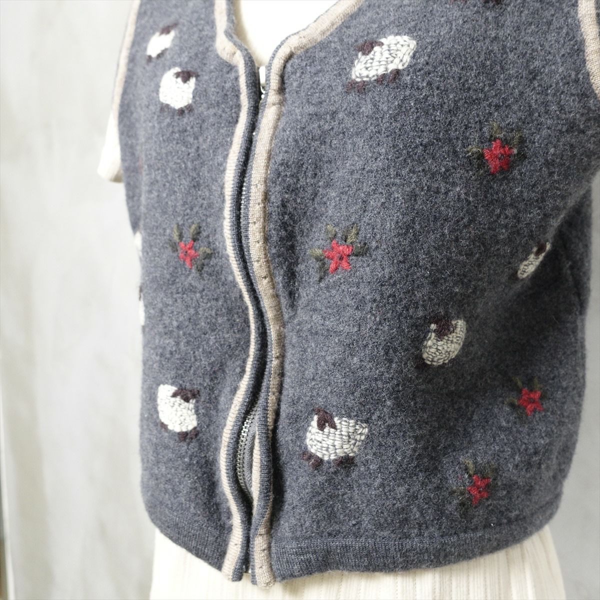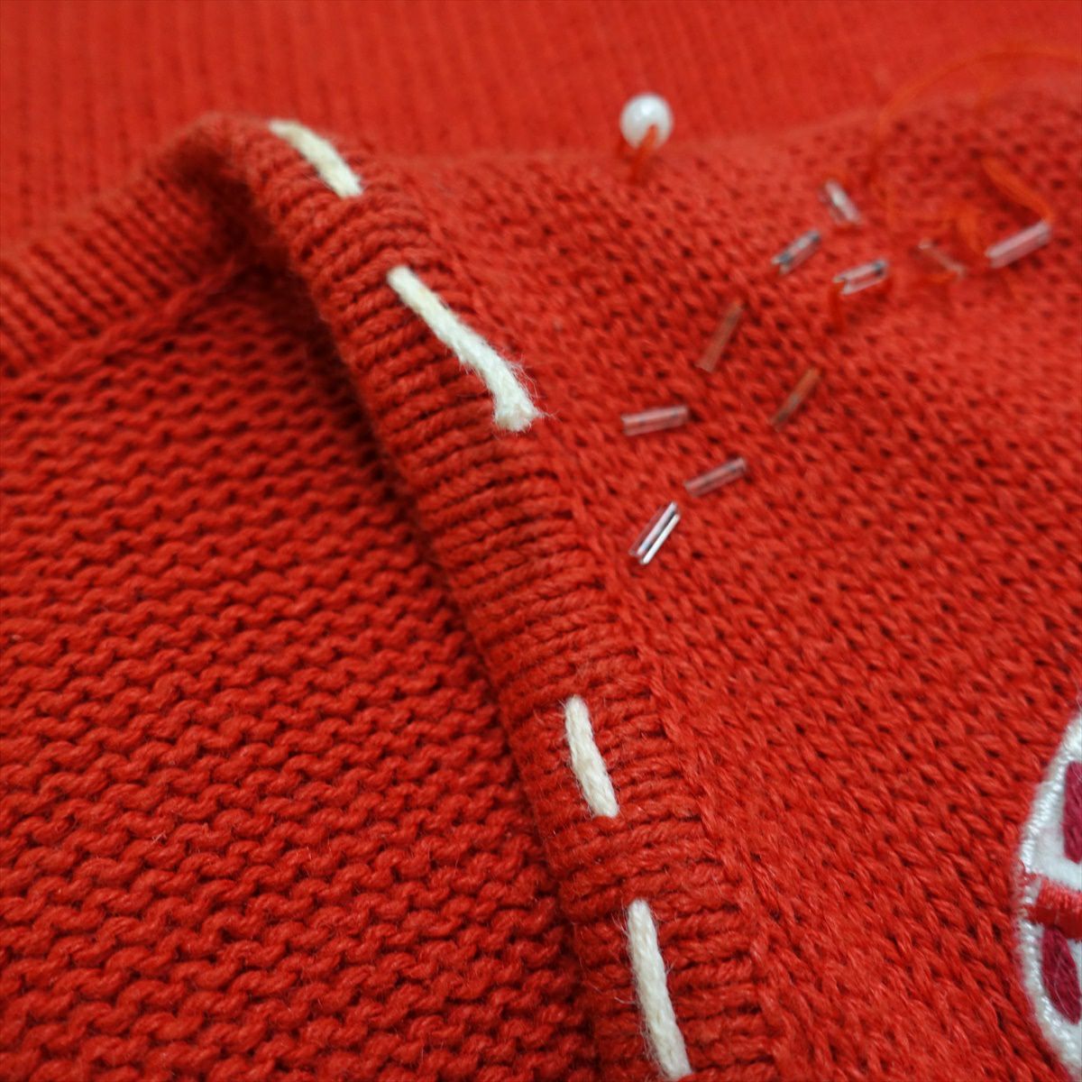 古着 花柄 ビーズ付き ニットベスト