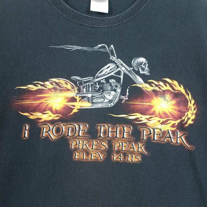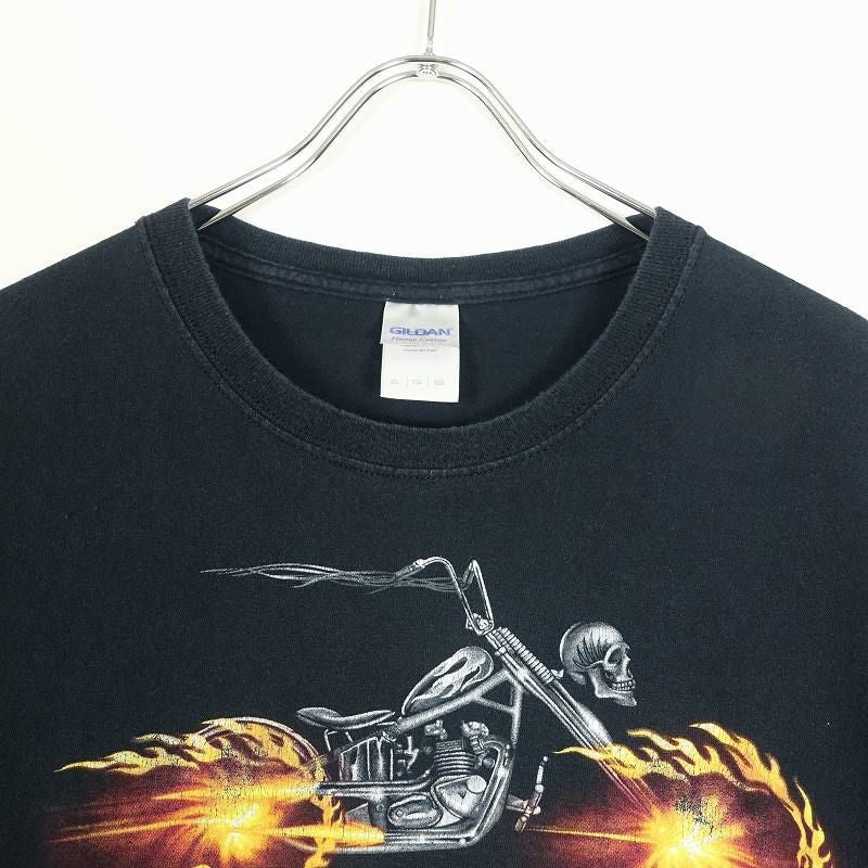 古着 GILDAN スカル バイク 黒Tシャツ