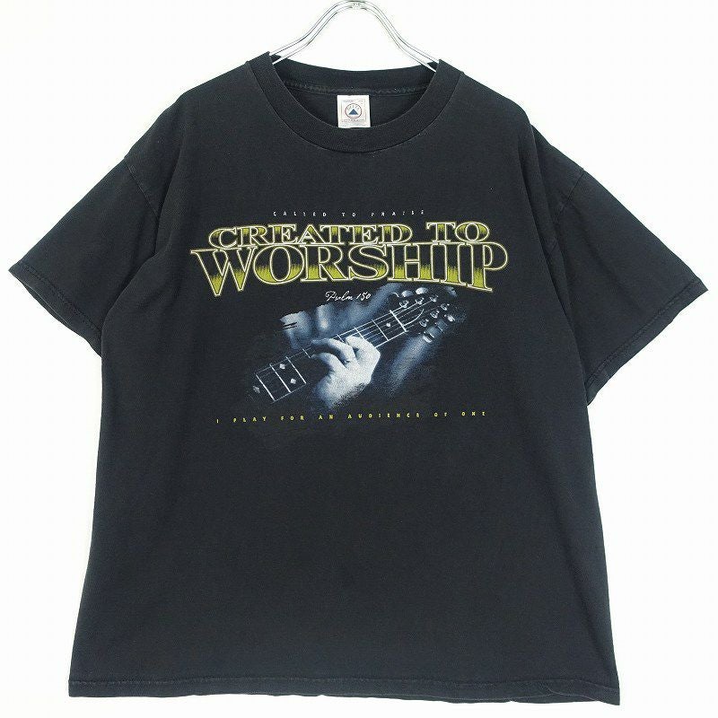 古着 DELTA ギタープリント 黒Tシャツ