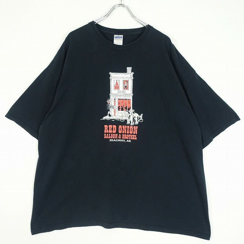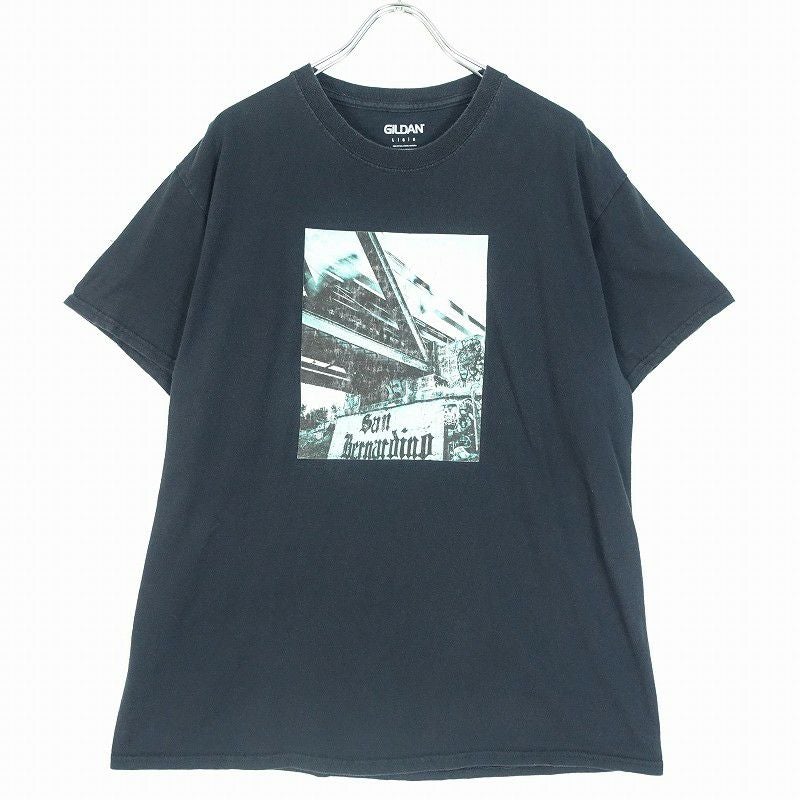古着 GILDAN ロゴプリント 黒Tシャツ