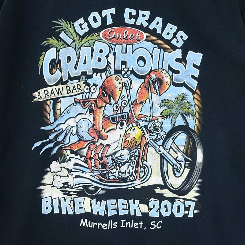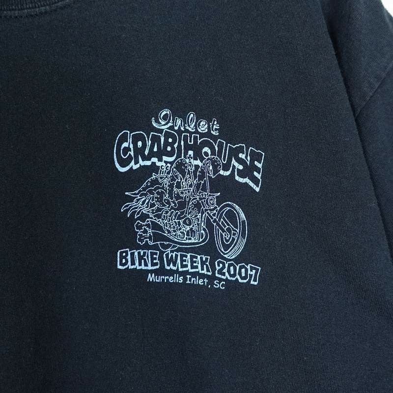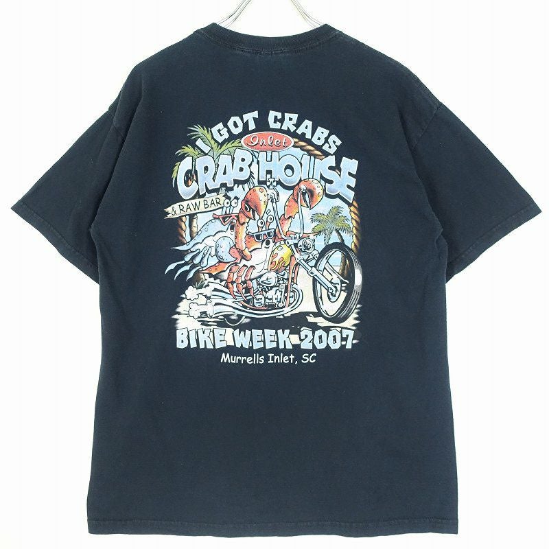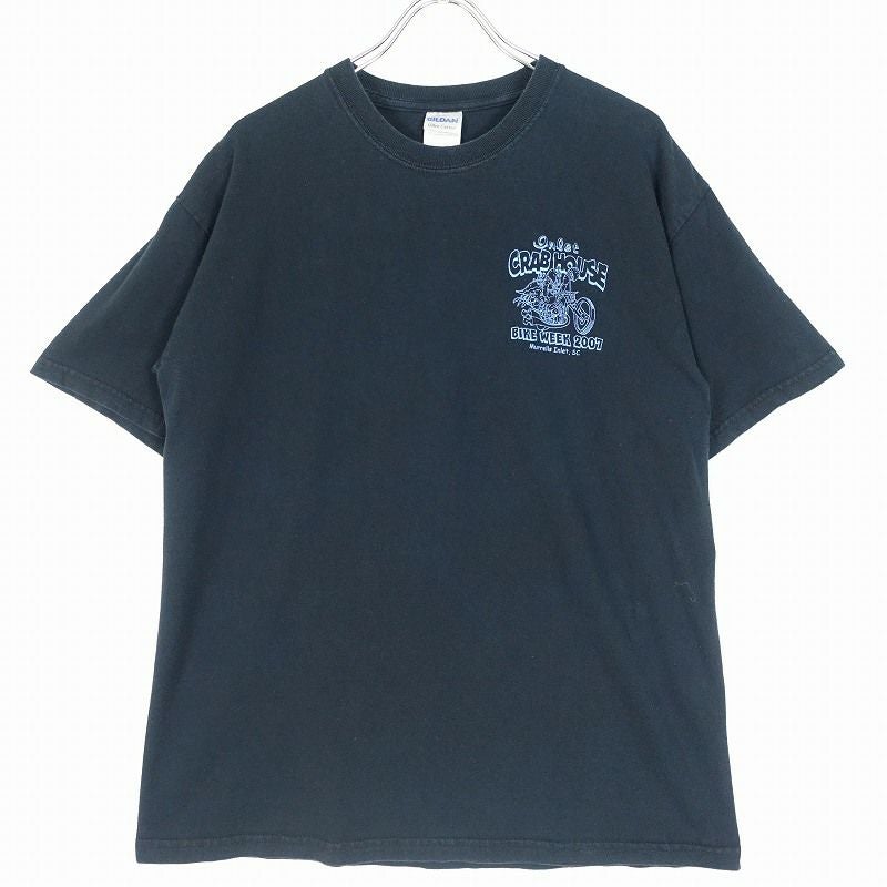 古着 GILDAN バイクプリント 黒Tシャツ