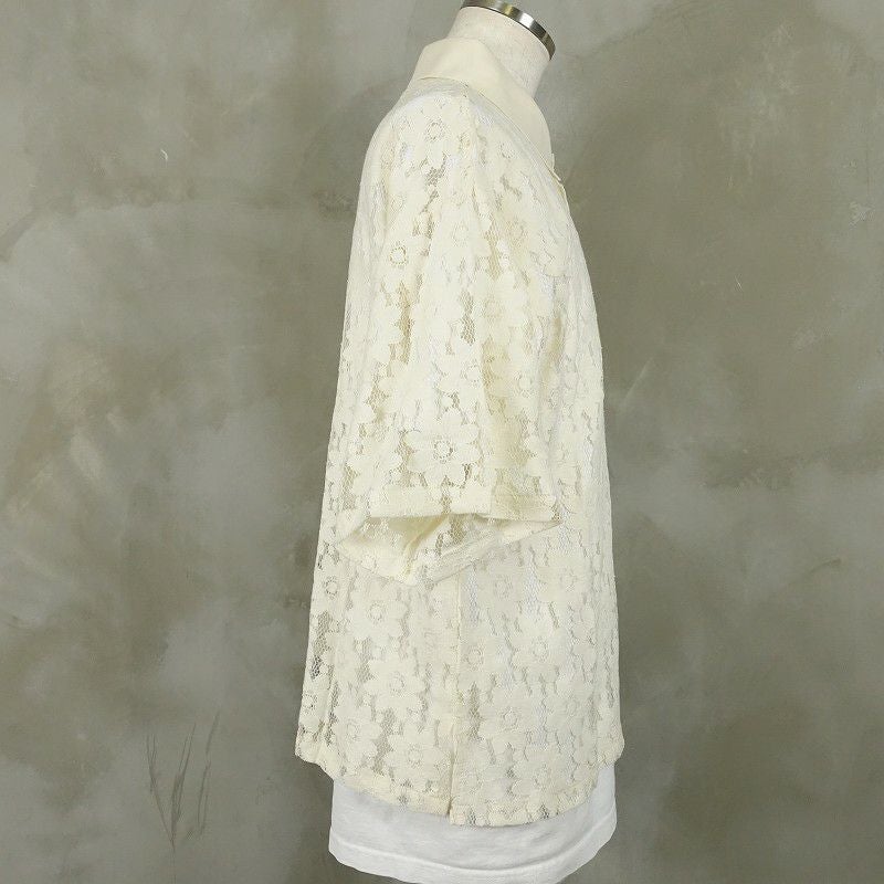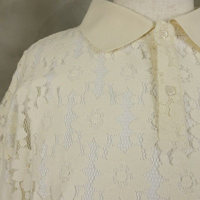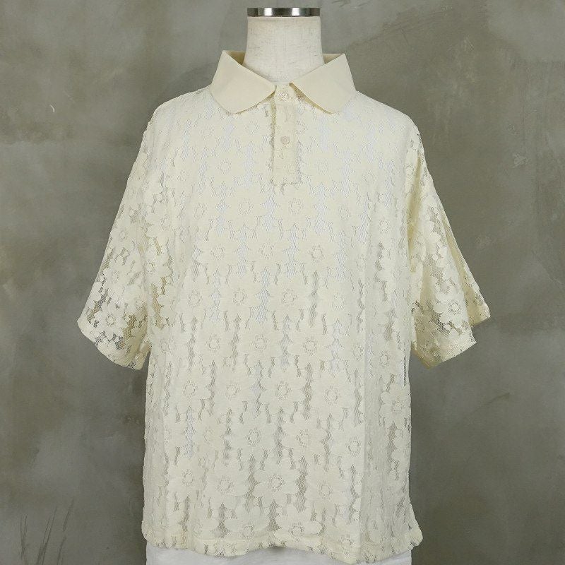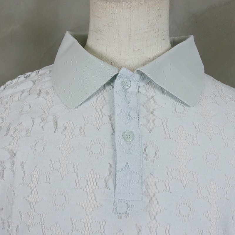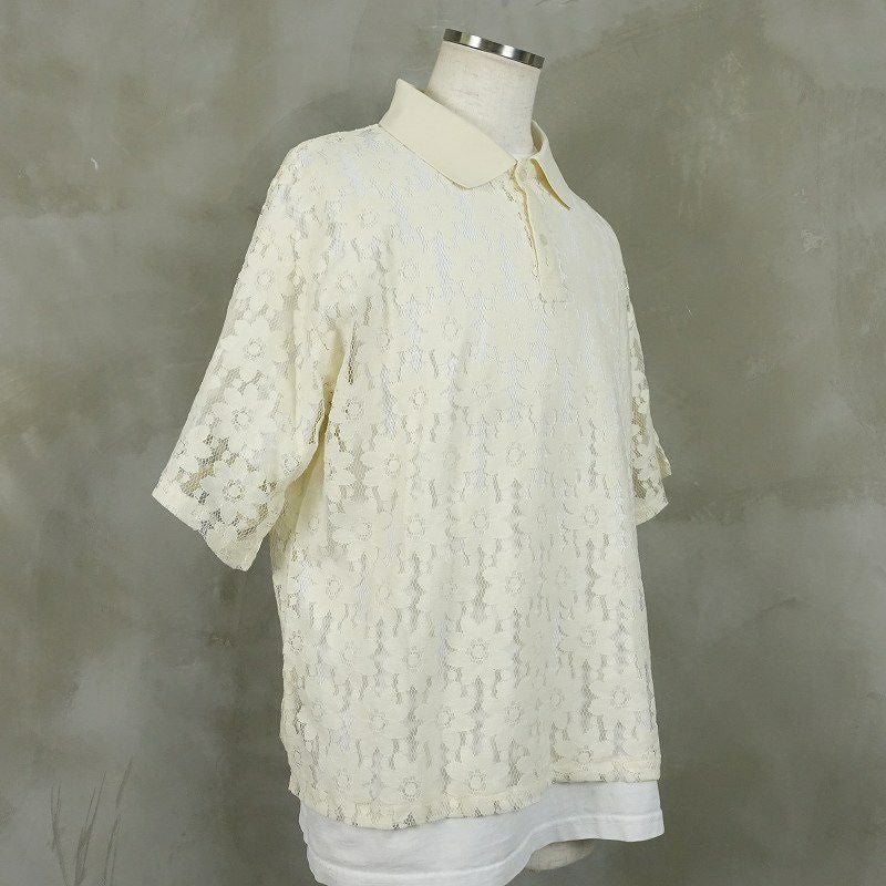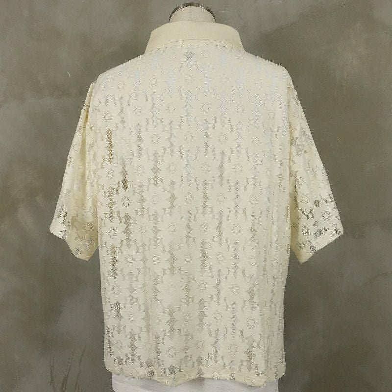 FAFATT シースルー 花柄 半袖ポロシャツ ホワイト