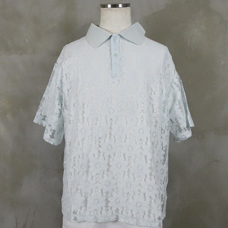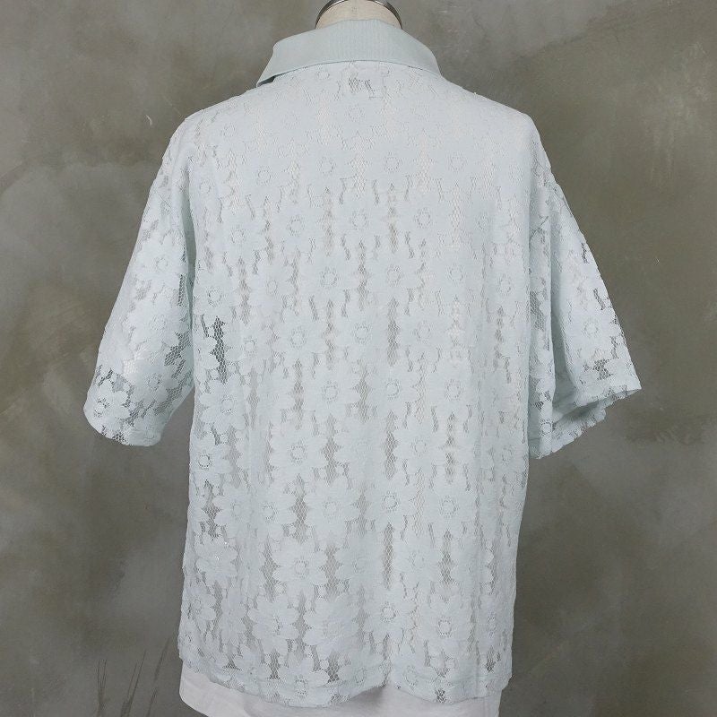 FAFATT シースルー 花柄 半袖ポロシャツ ブルー