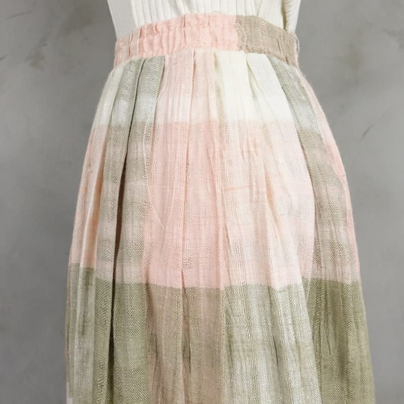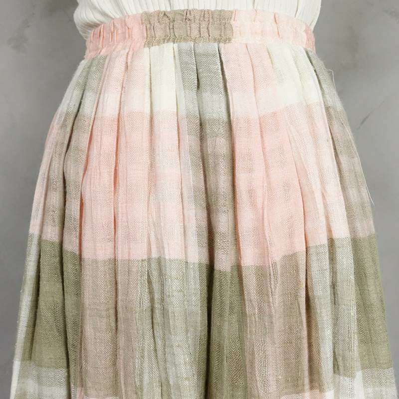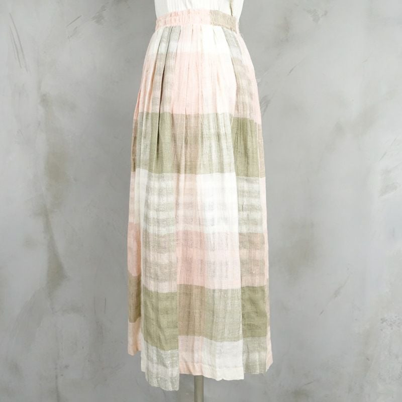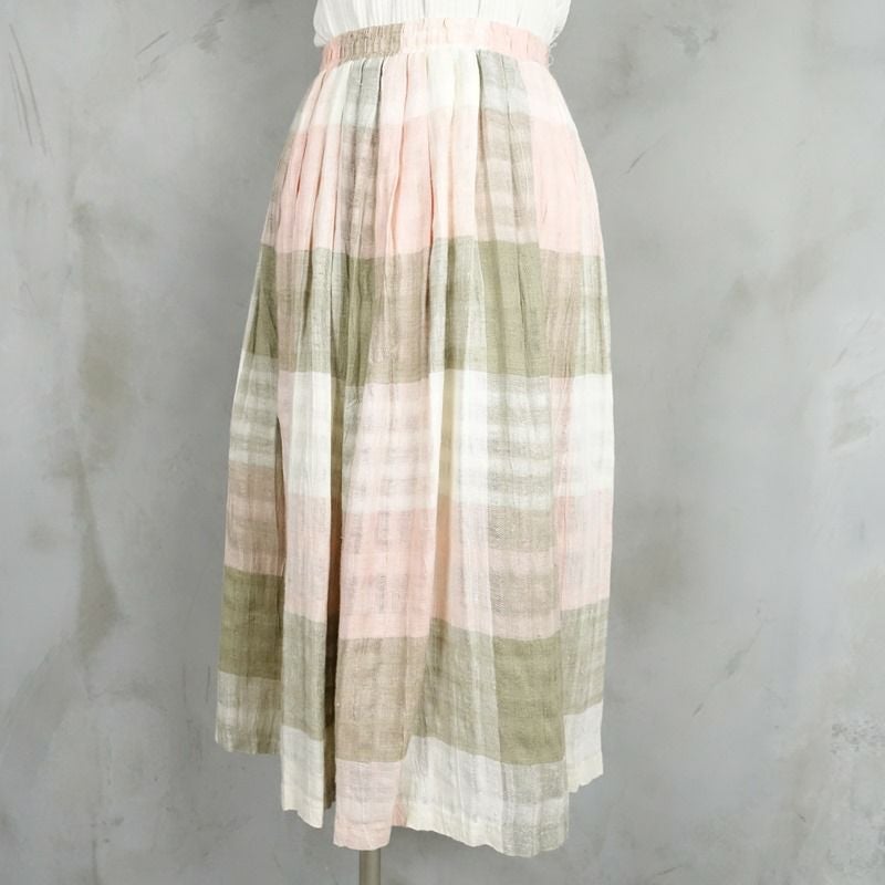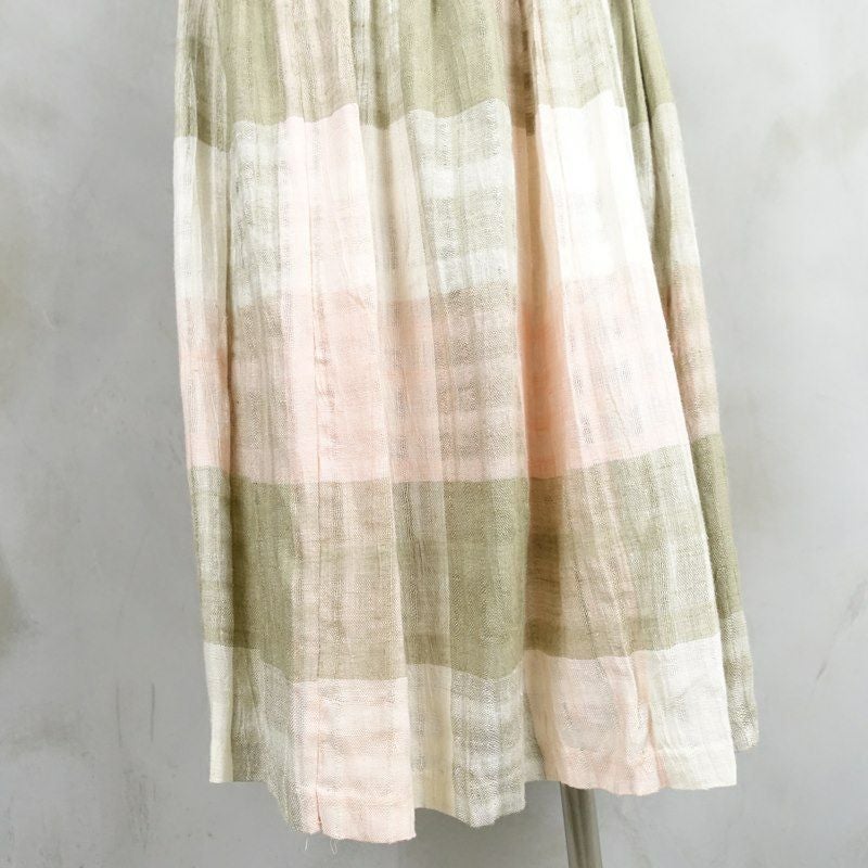 古着 チェック リネン プリーツスカー