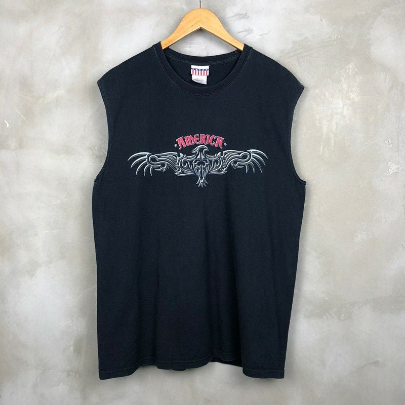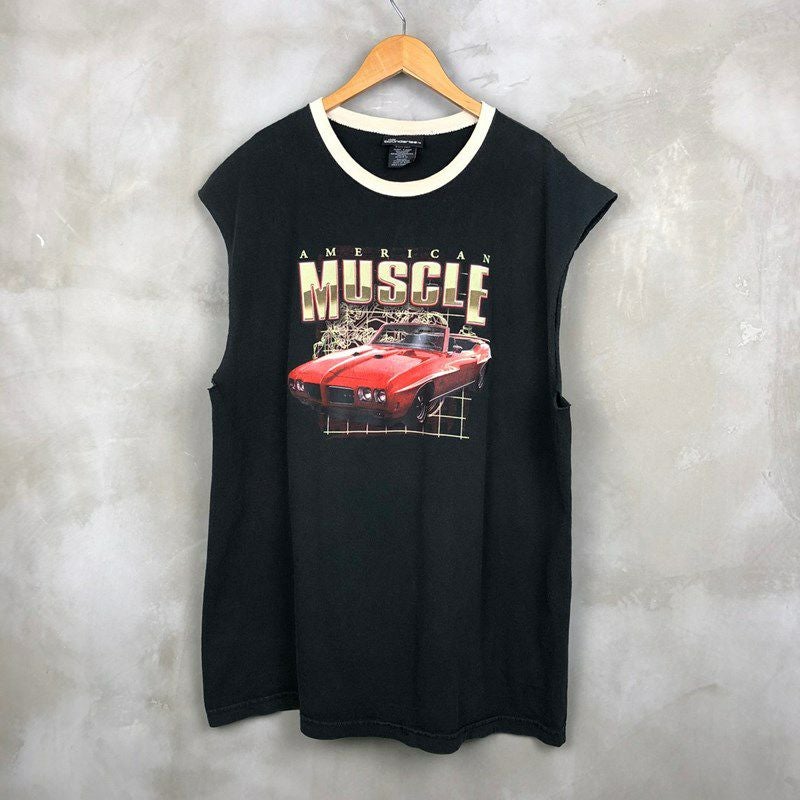 古着 no boundaries 車 プリント カットオフ ボックス タンクトップ