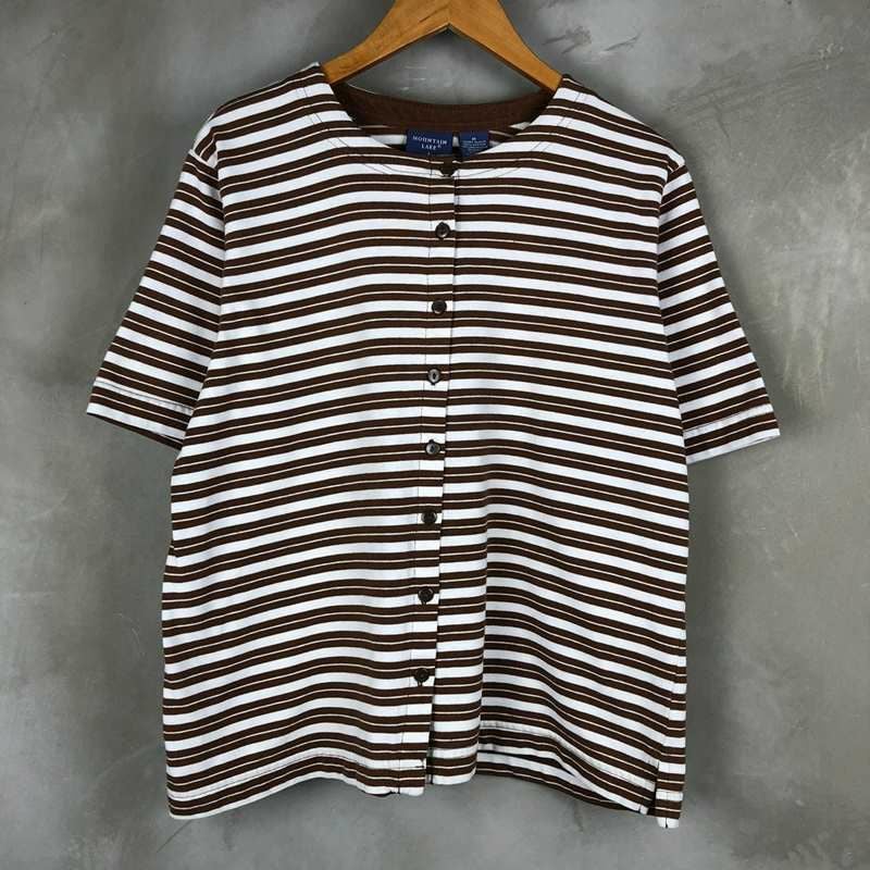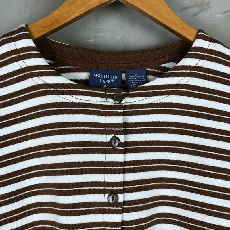 古着 MOUNTAIN LAKE ボーダー 前開き ボタンダウン Tシャツ