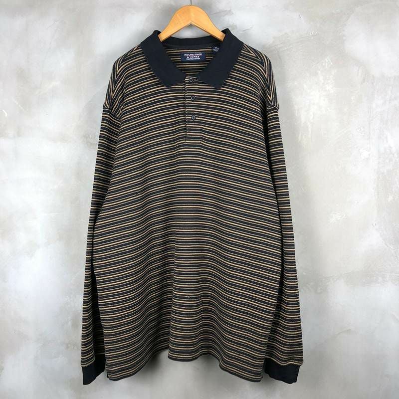古着 ROUNDTREE&YORKE ボーダー 長袖 ポロシャツ