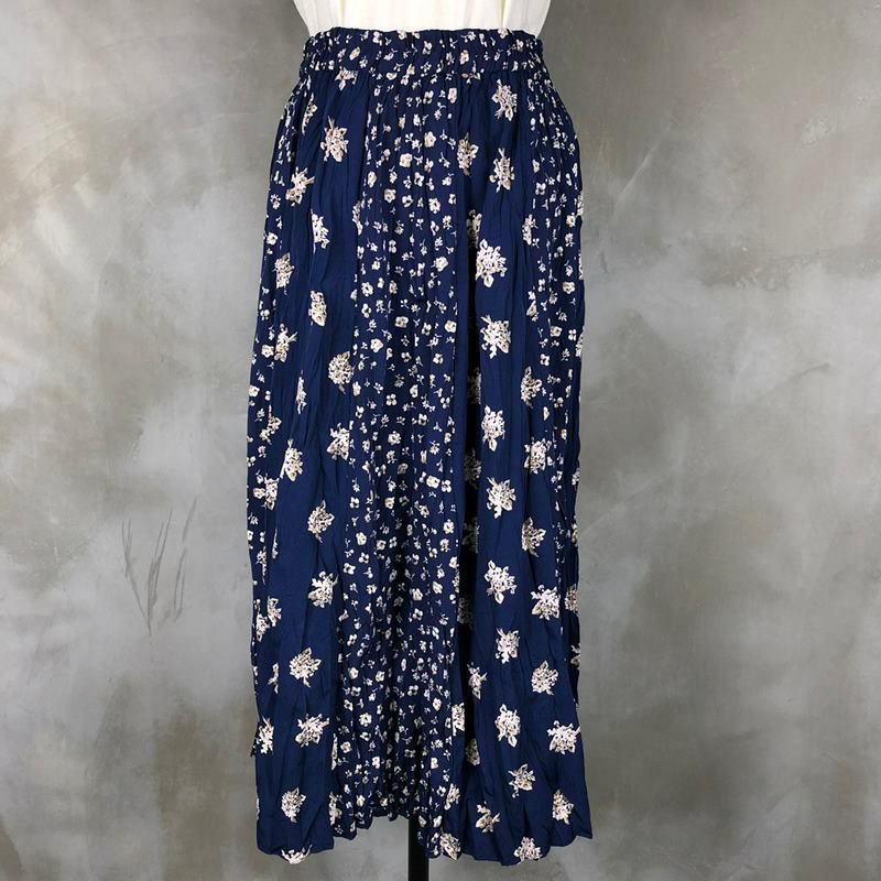 古着 総柄 プリーツ レーヨン ロングスカート
