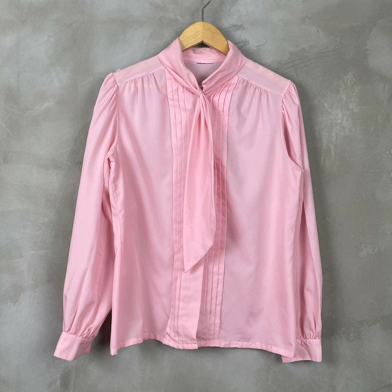 古着 長袖ボウタイブラウス