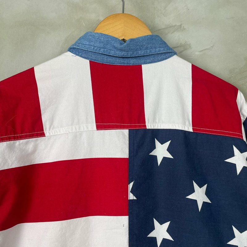 古着 星条旗柄長袖シャツ