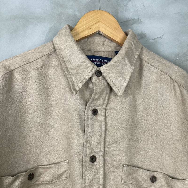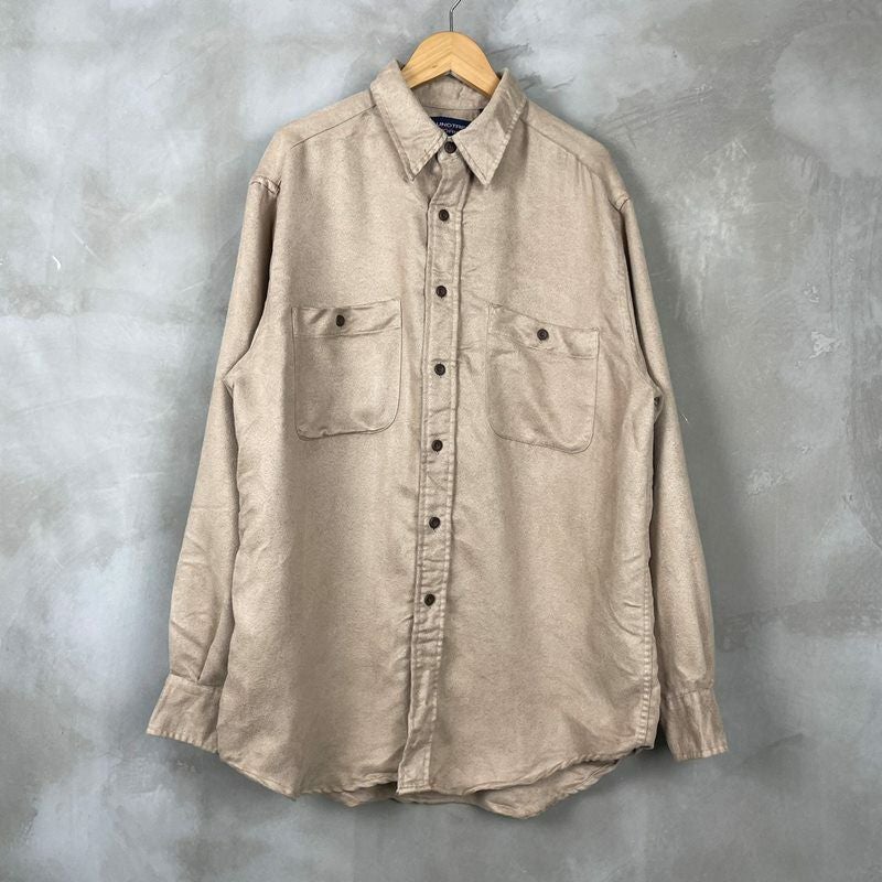 古着 長袖フェイクスエードシャツ ベージュ