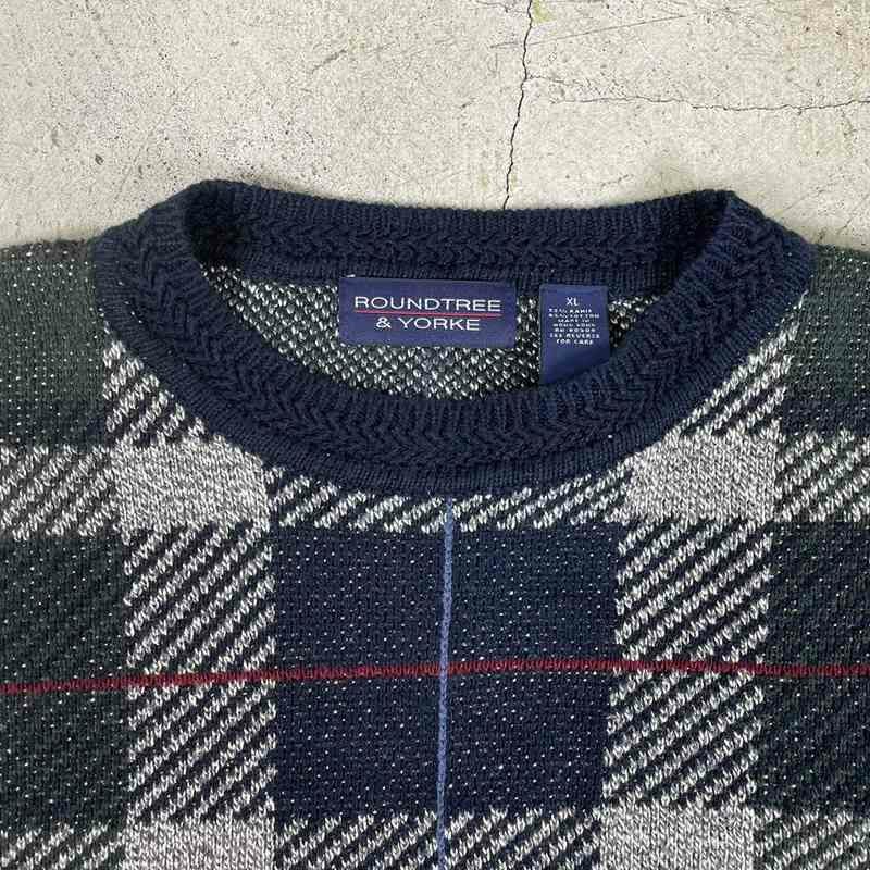 古着 ROUNDTREE&YORK チェック柄コットンニット