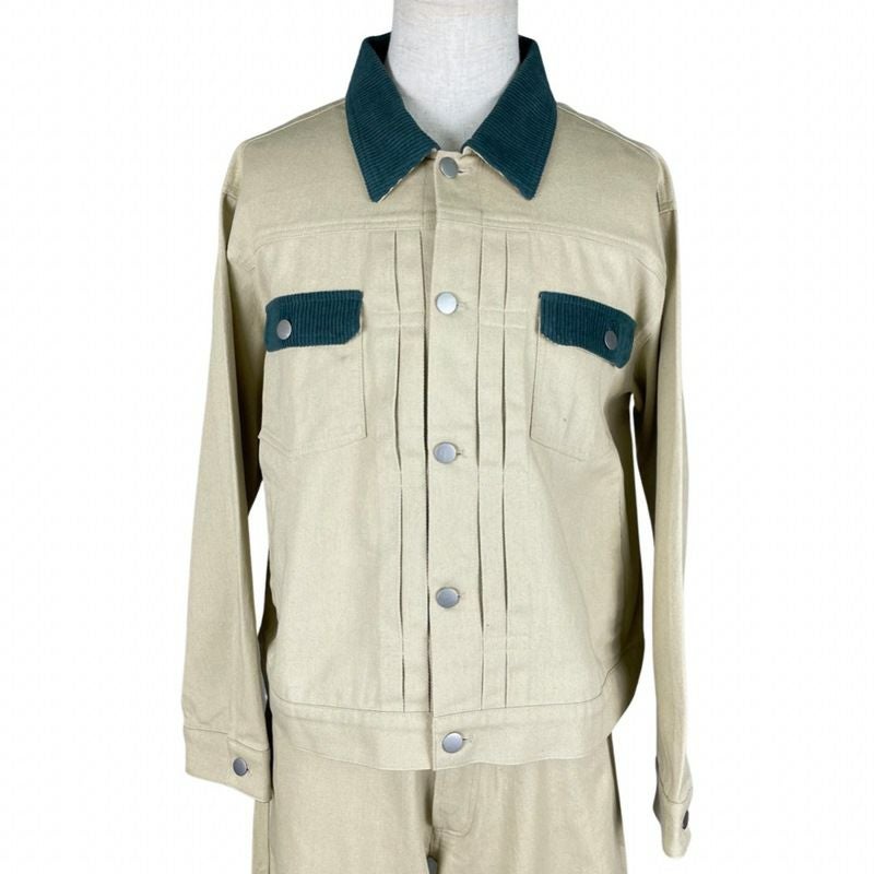 FAFATT 切り替えコットンJKT ベージュ×グリーン