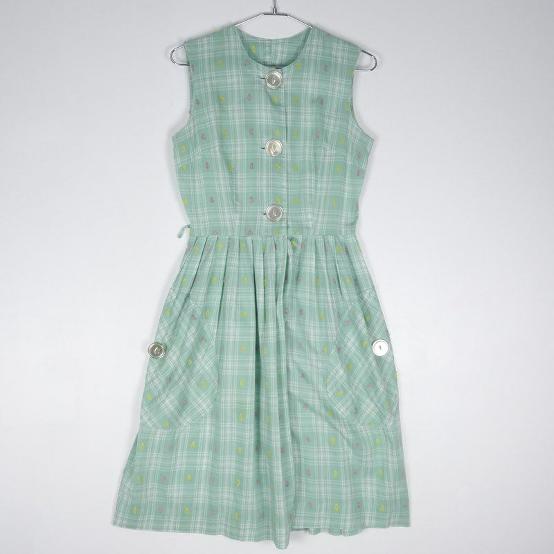 古着 チェック デザイン ノースリーブワンピース