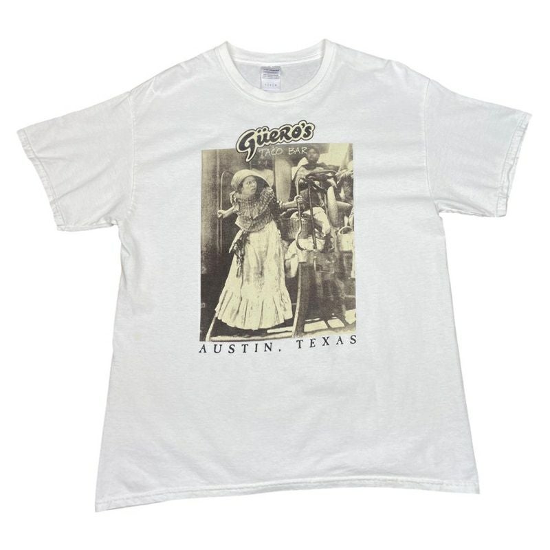 古着 GILDAN TACO BAR セピアフォトプリントtee