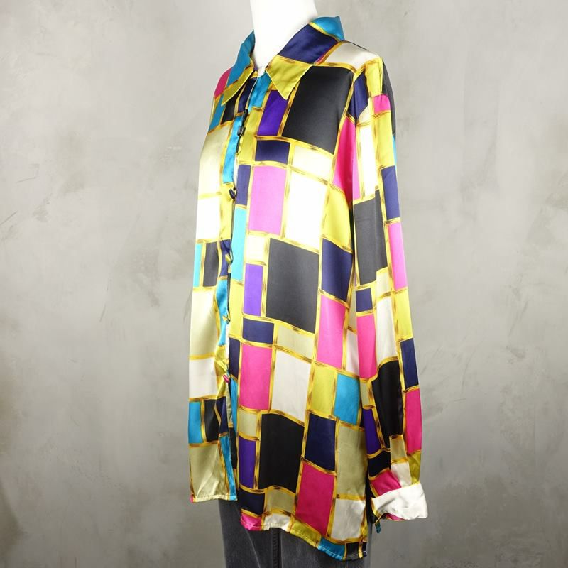 古着 ペイズリー柄 レーヨン 長袖シャツ