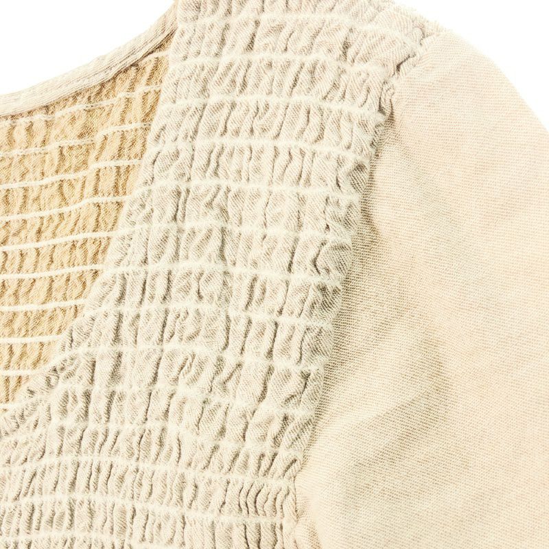 古着 ガーゼ風 ノーカラー 長袖ワンピース