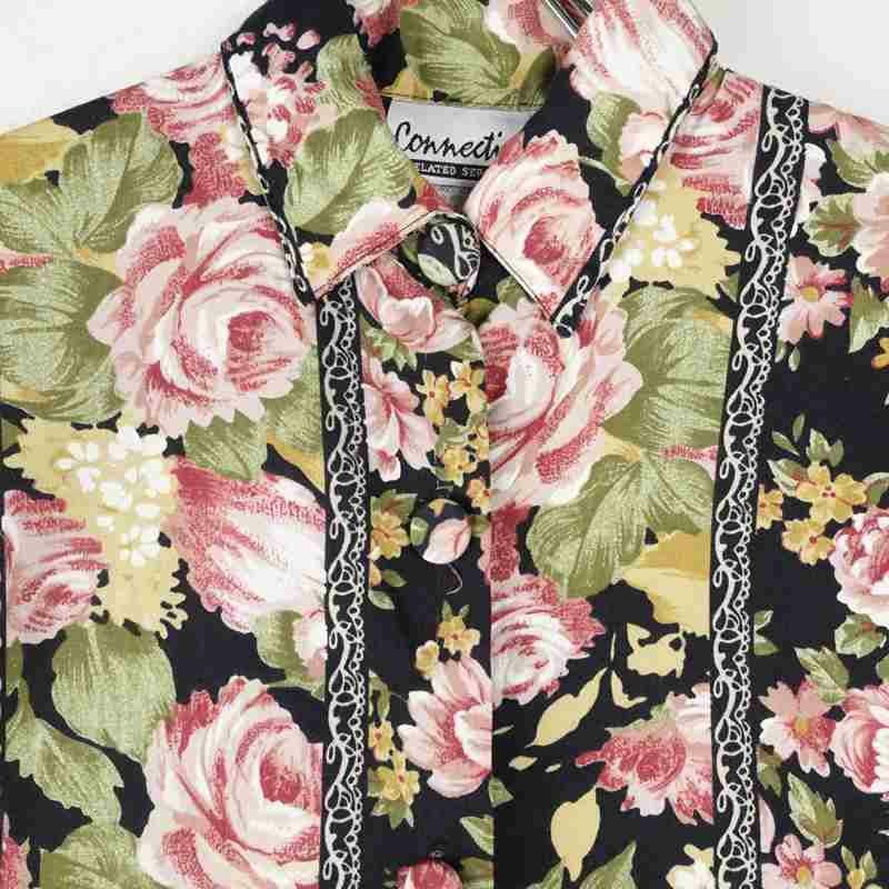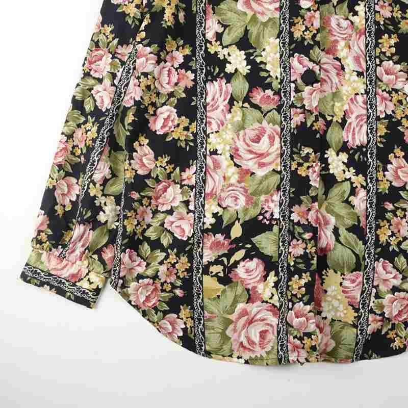 古着 Connections 花柄 レーヨン 長袖シャツ
