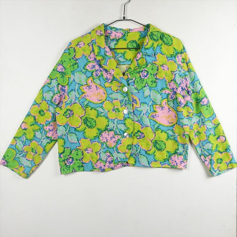 古着 大判花柄 ショート丈 テーラードジャケット