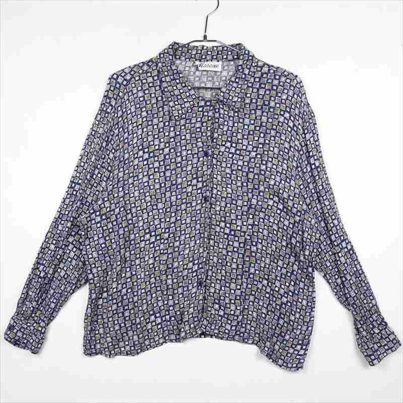古着 Maccine 幾何学 レーヨン 長袖シャツ