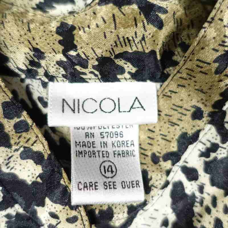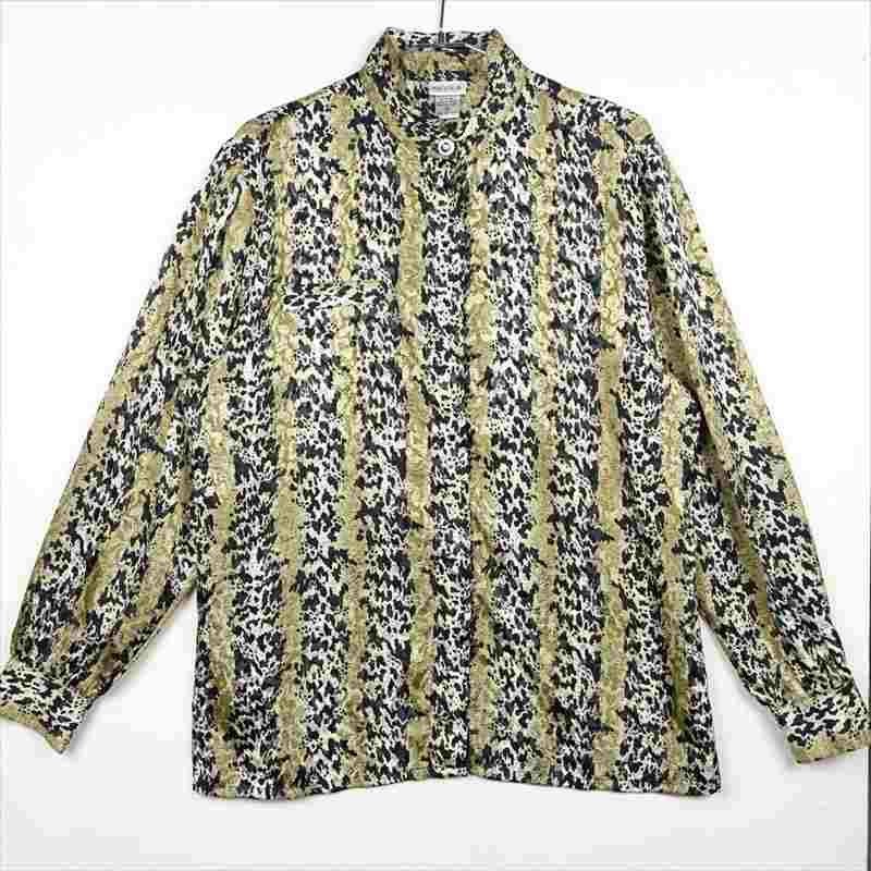 古着 NICOLA レオパード柄 立ち襟 長袖シャツ