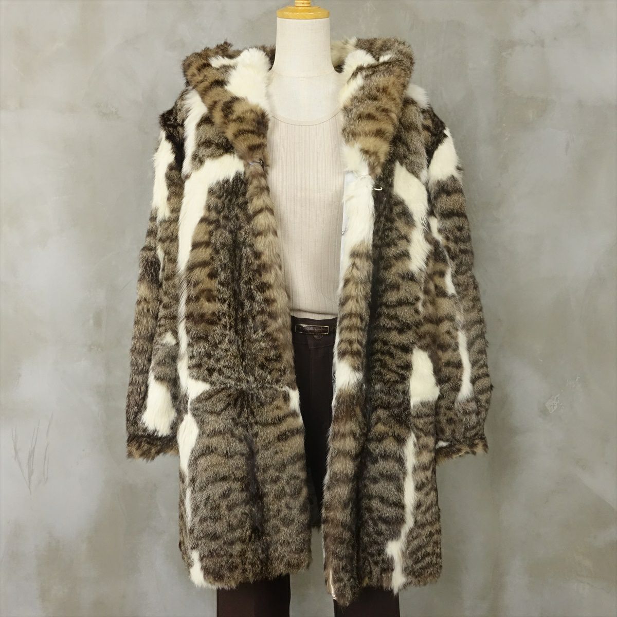古着 リアルファー フード付き コート
