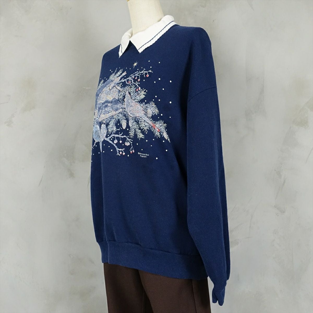 古着 MORNING SUN 襟刺繍 スウェット
