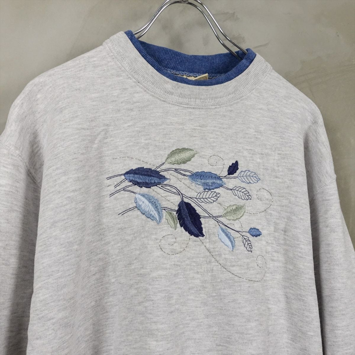 古着 2重襟 リーフ刺繍 スウェット