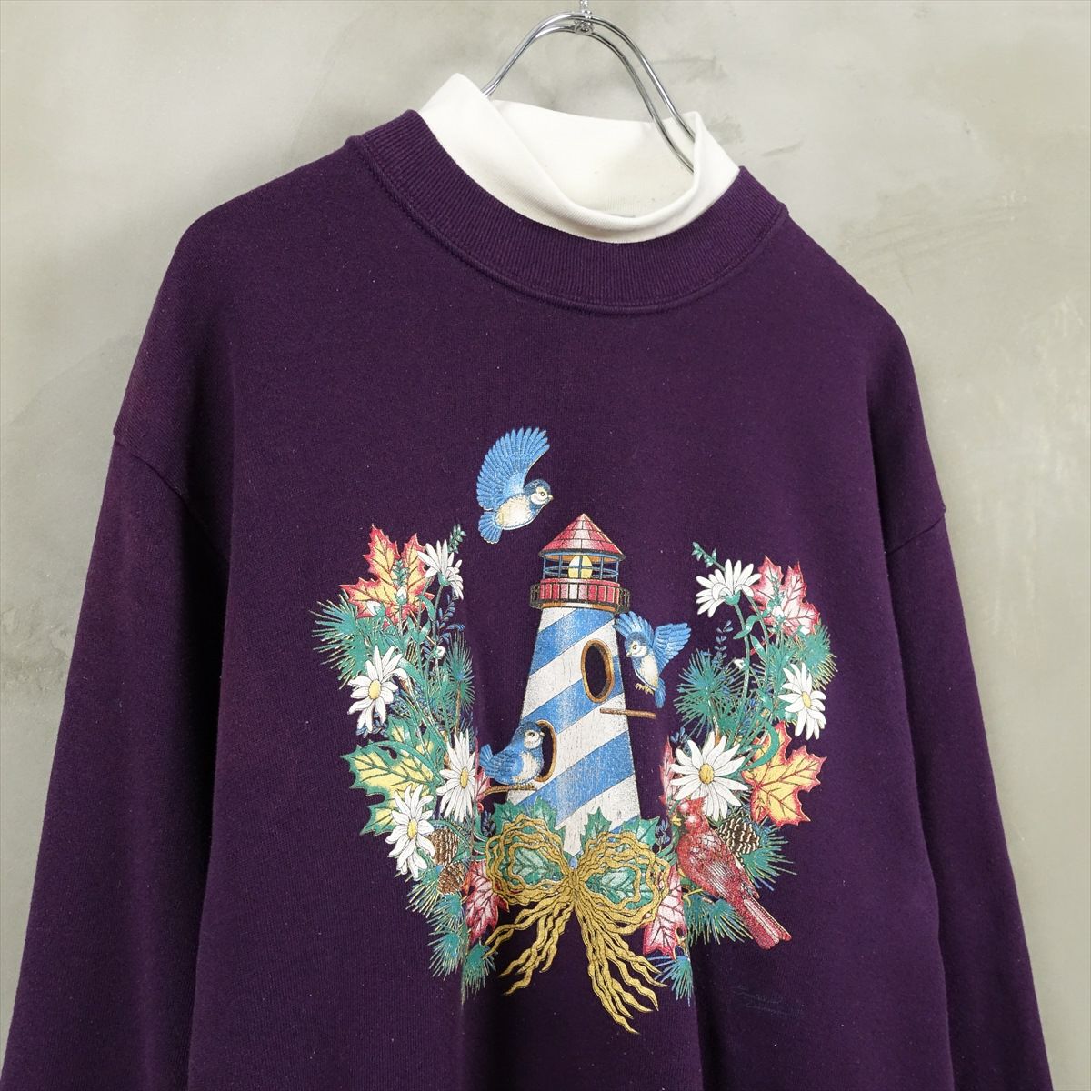 古着 2重襟 鳥モチーフスウェット