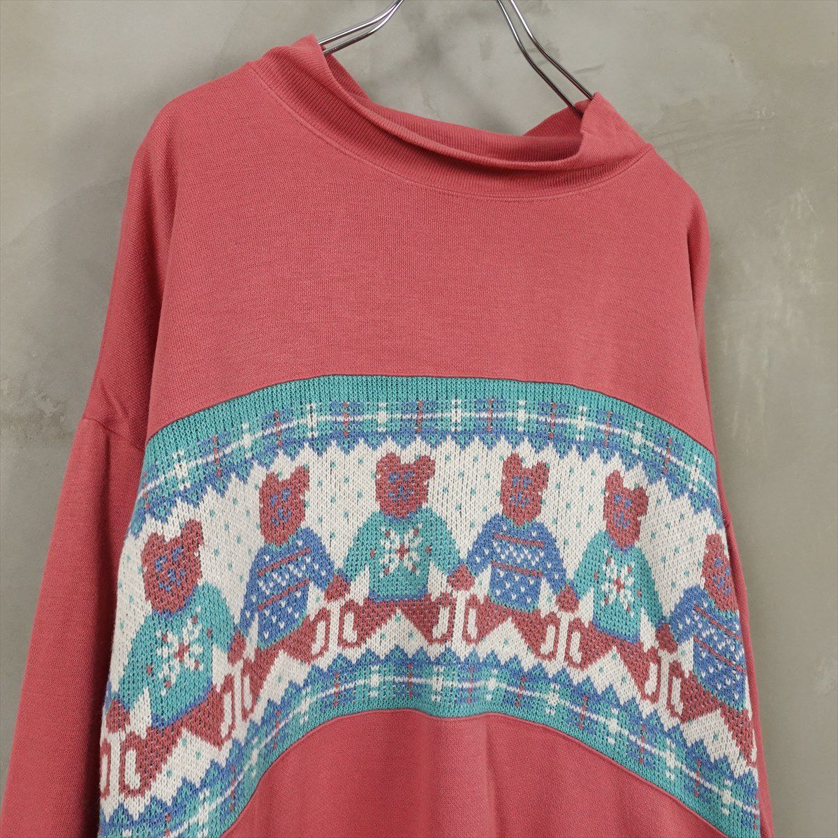 古着 ニット切り替え アニマルモチーフ スウェット