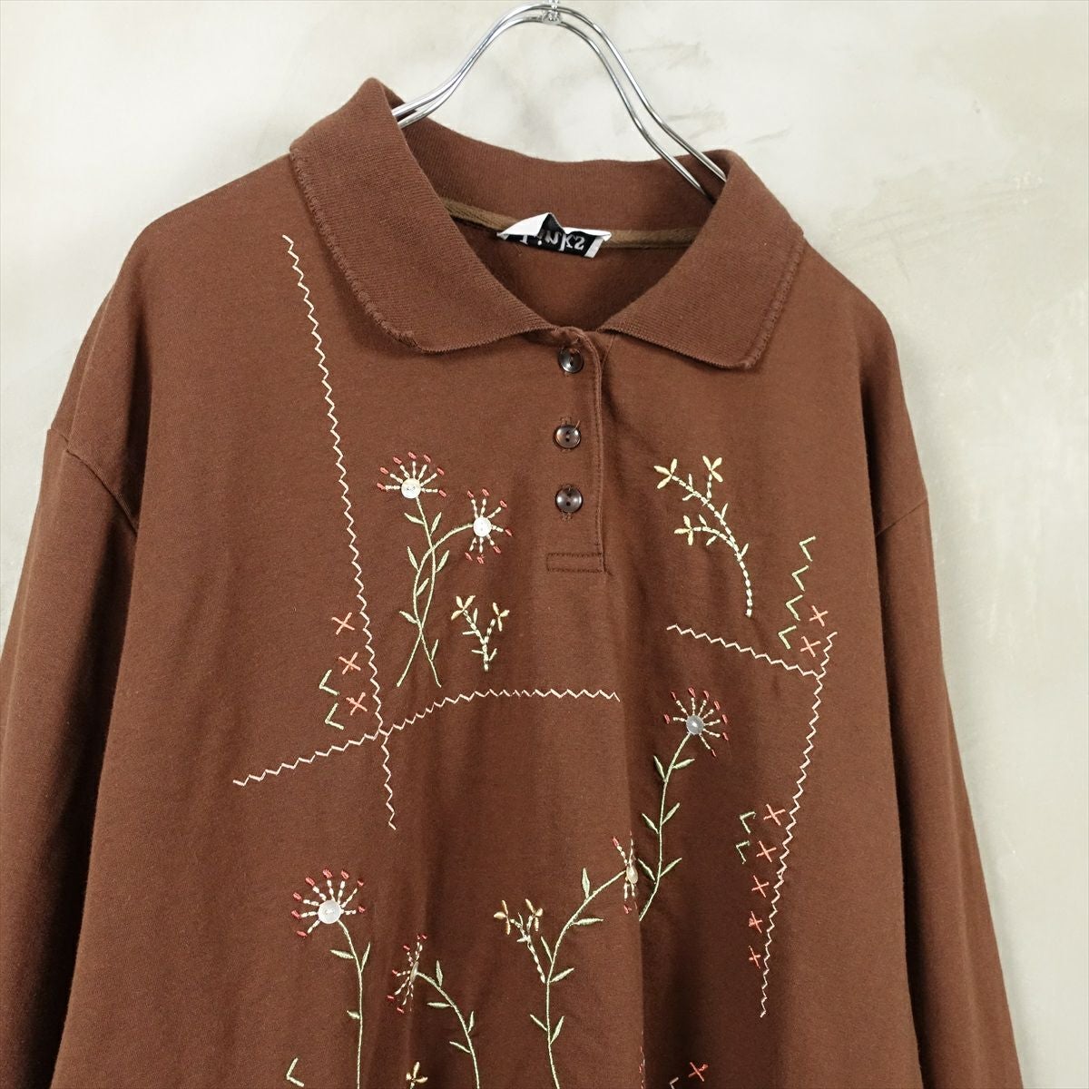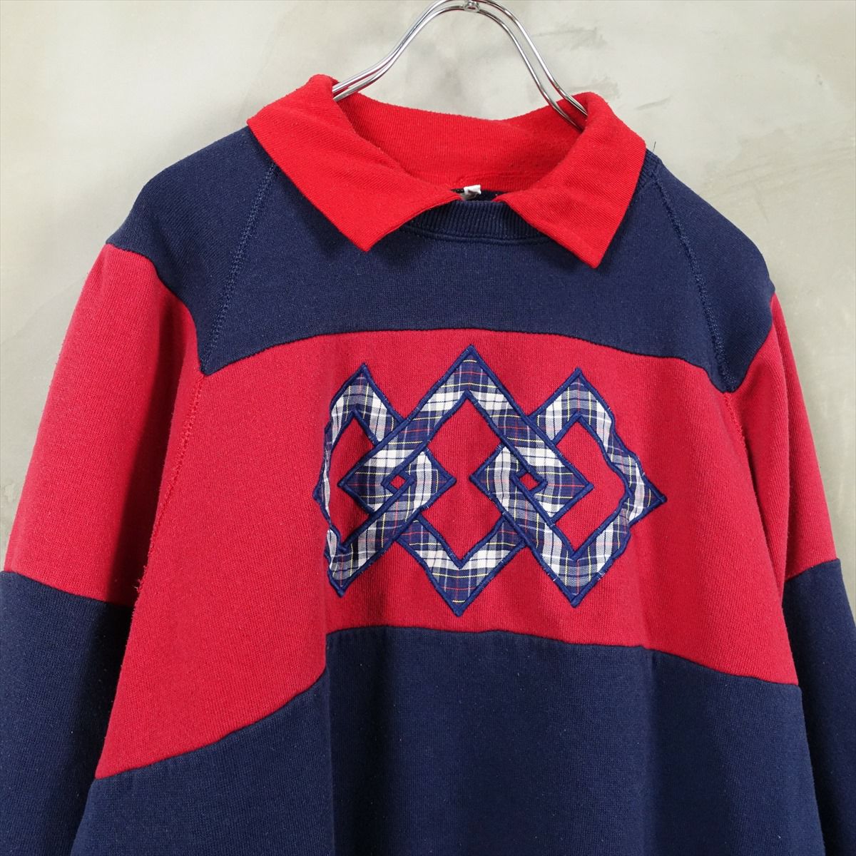 古着 襟付き リーフ刺繍 スウェット