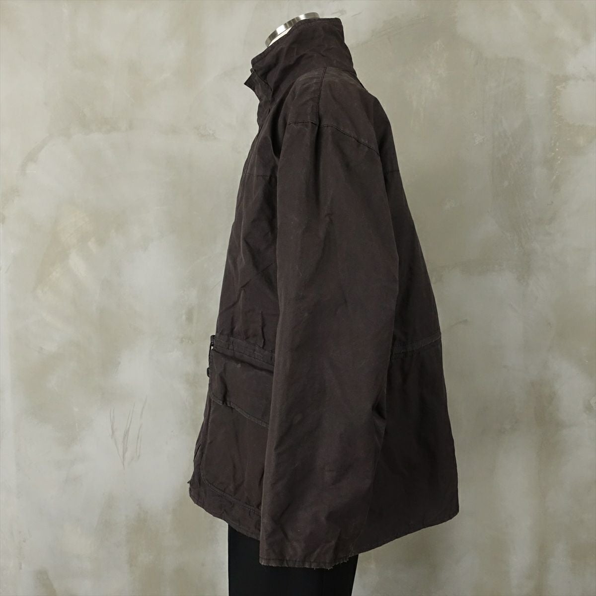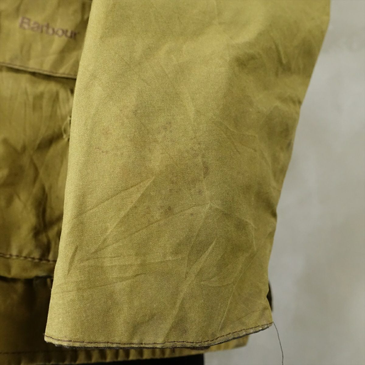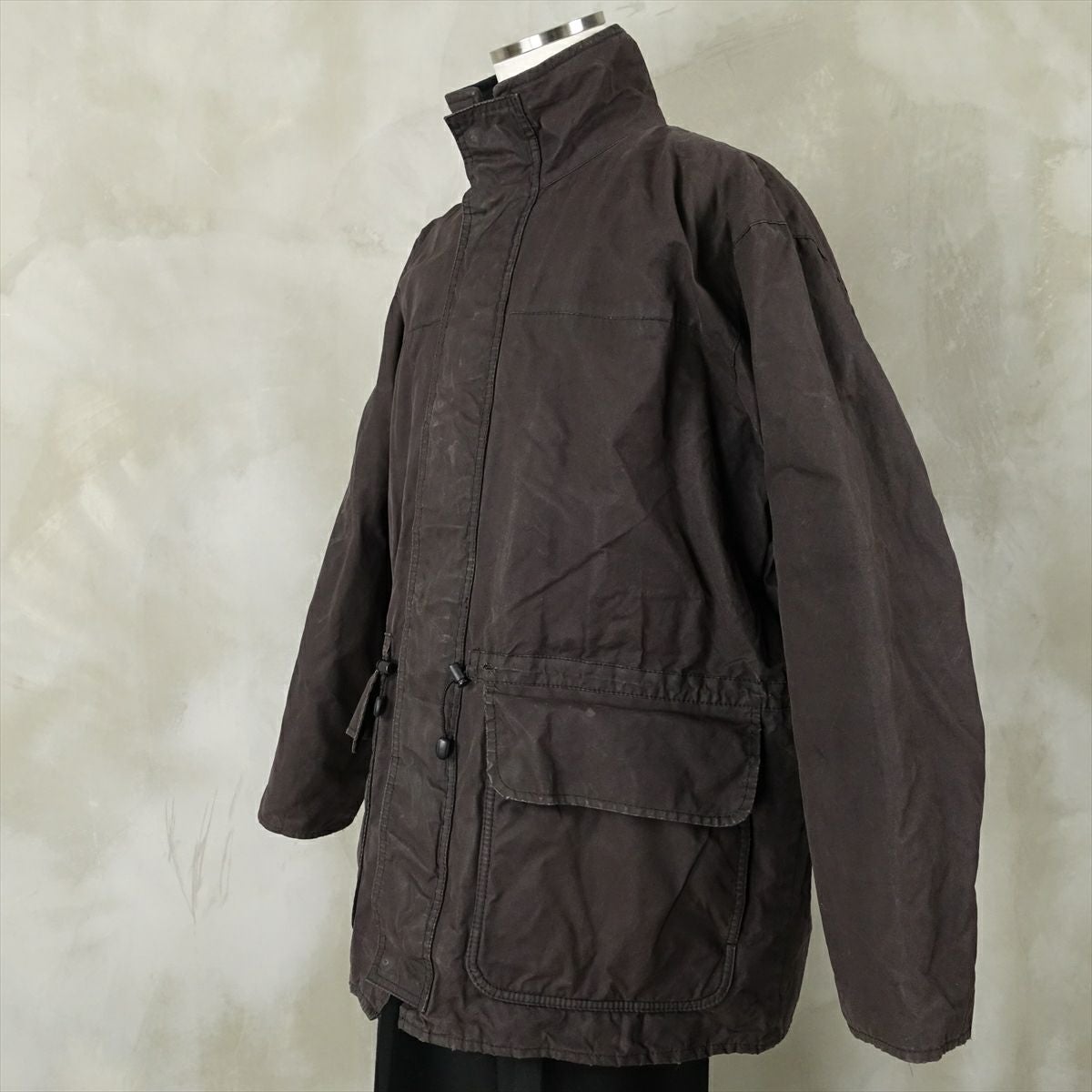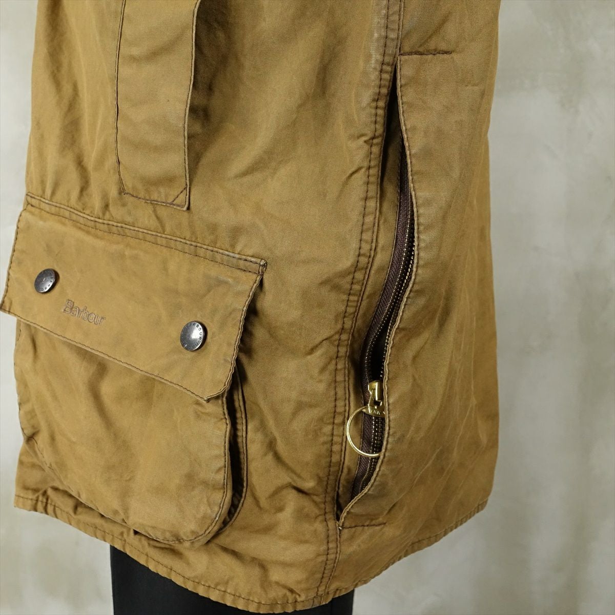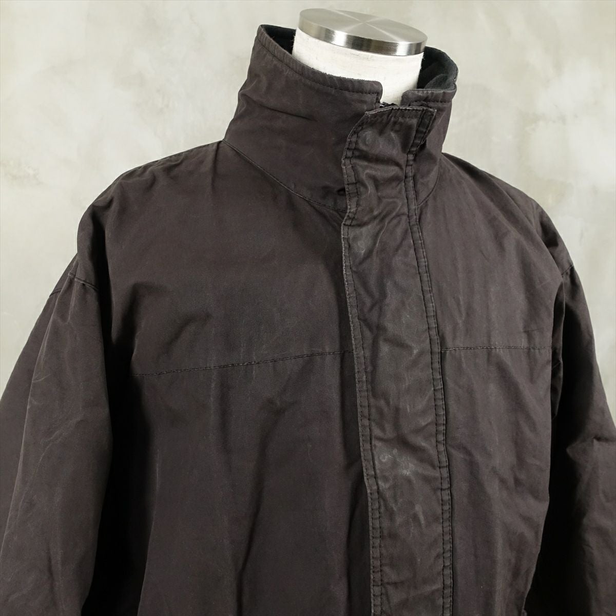 古着 Barbour ノーカラー オイルドジャケット