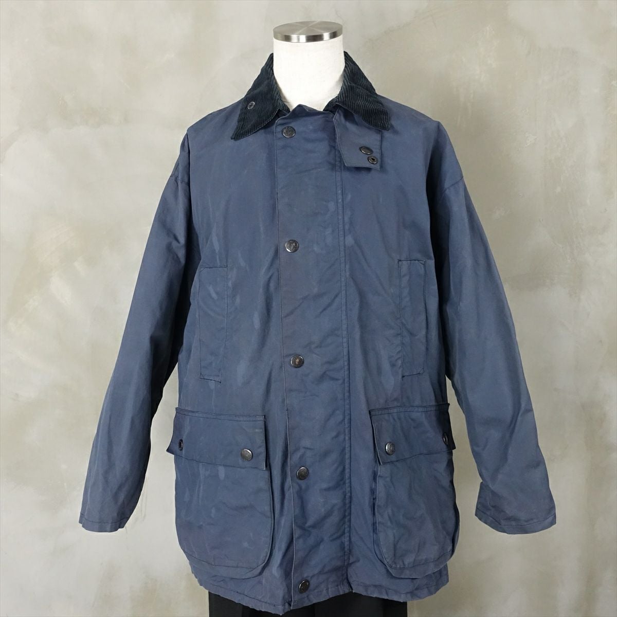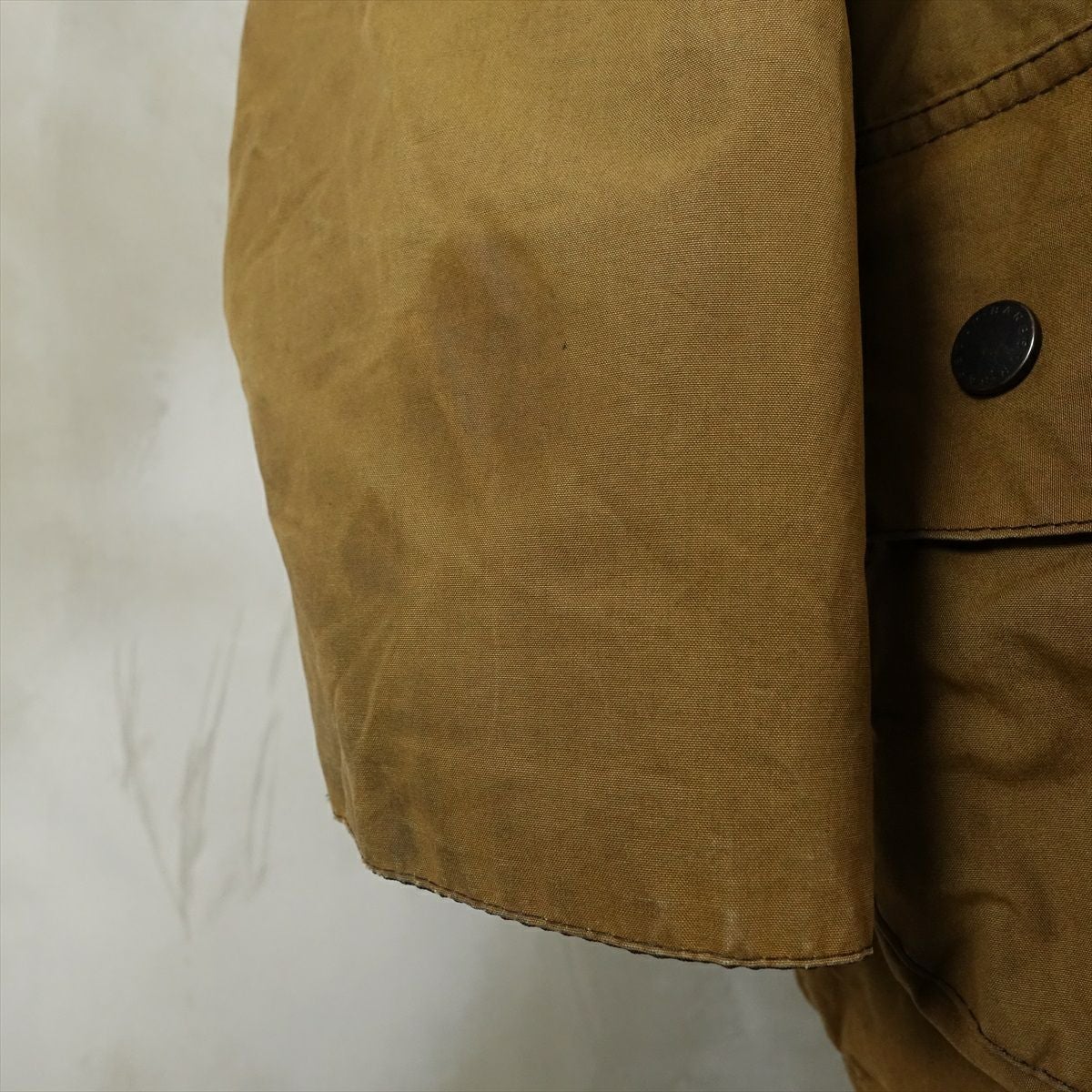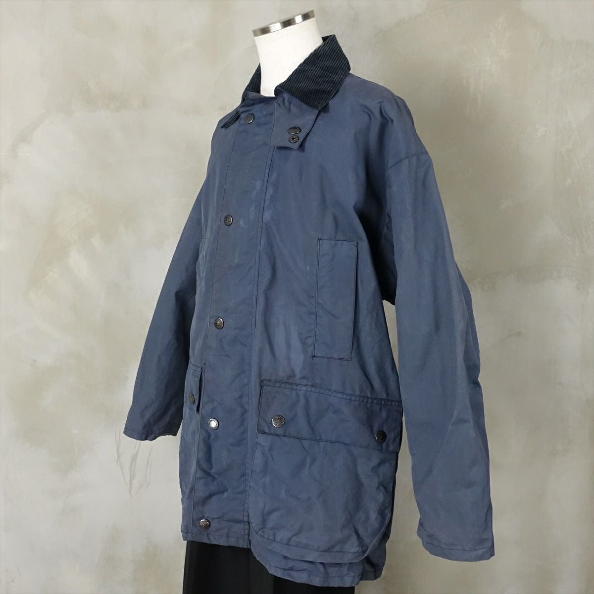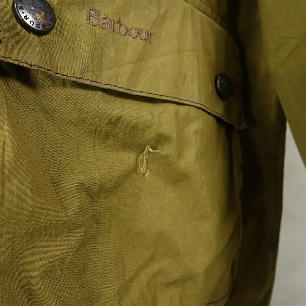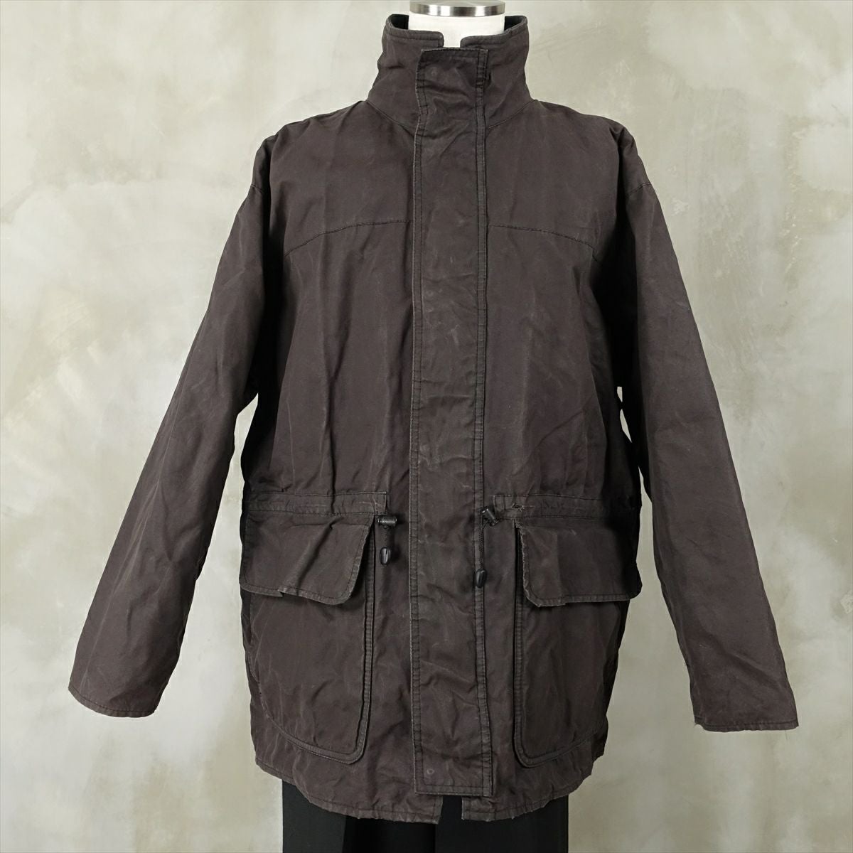古着 Barbour ノーカラー オイルドジャケット