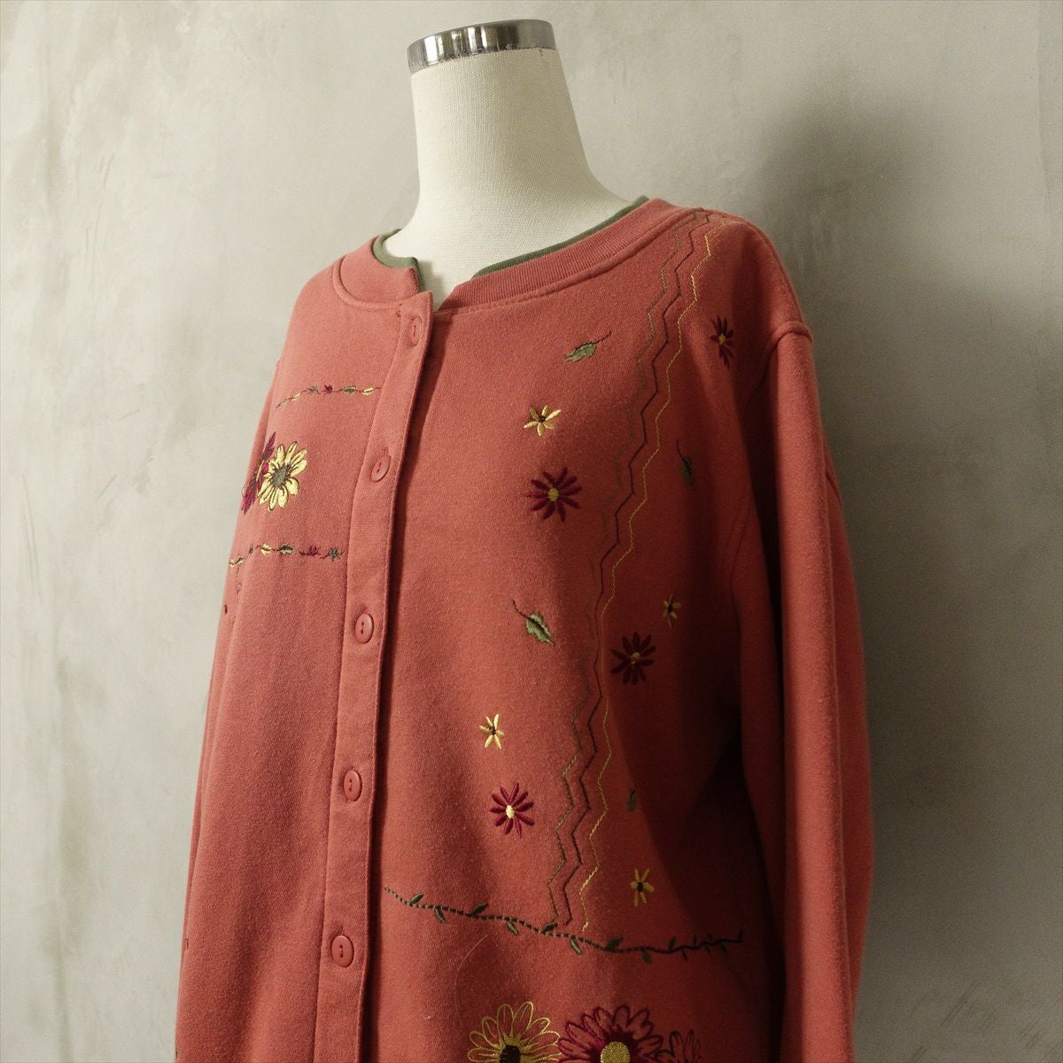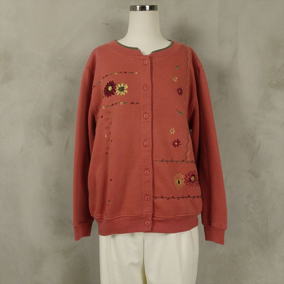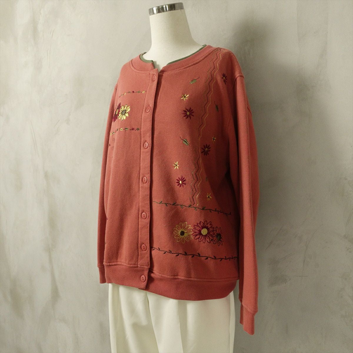 古着 花柄刺繍 スウェット カーディガン