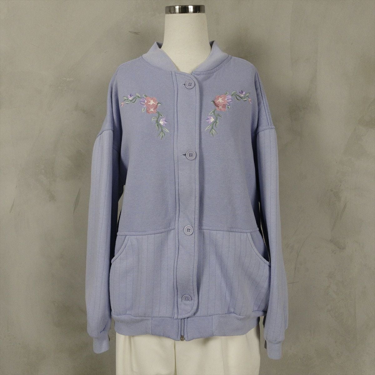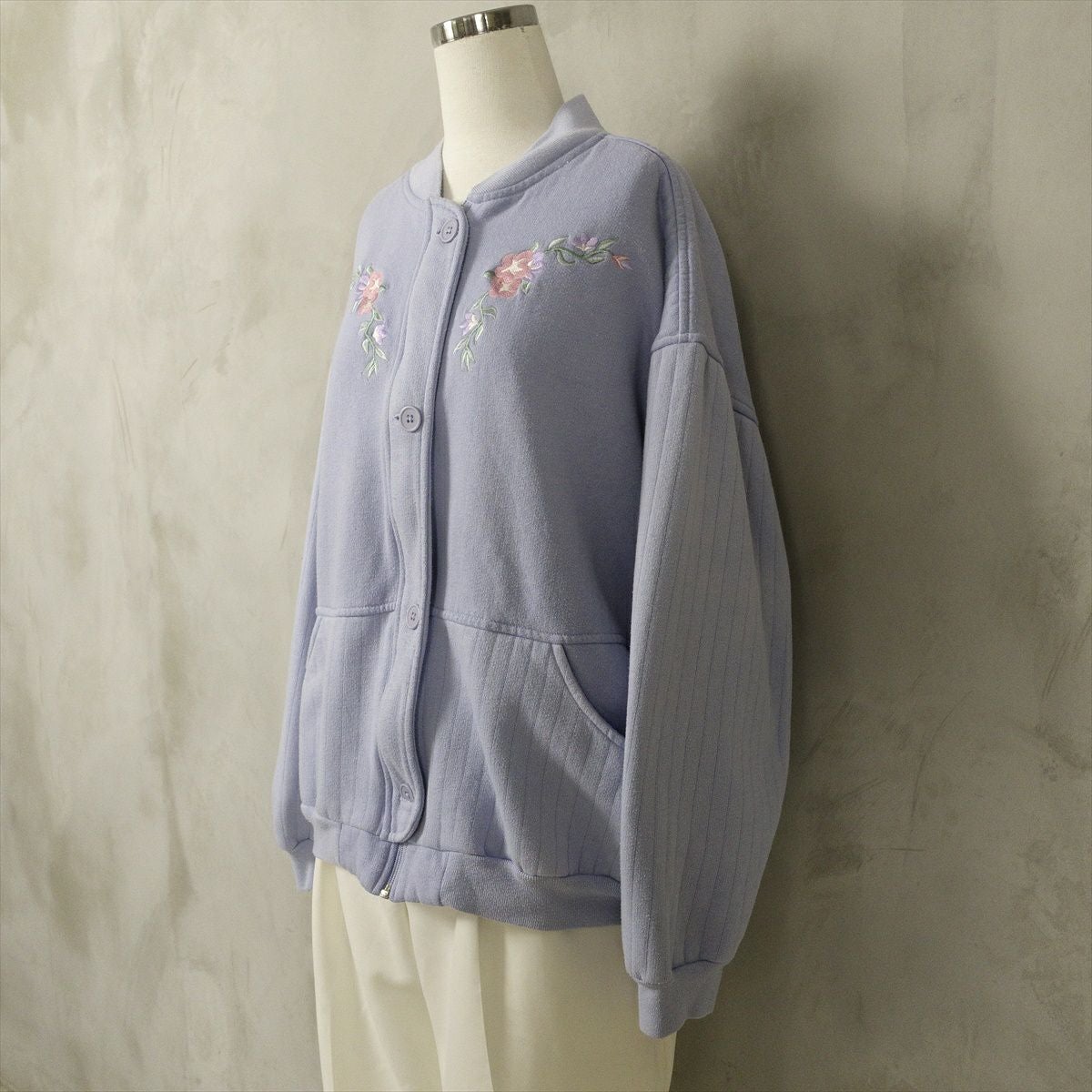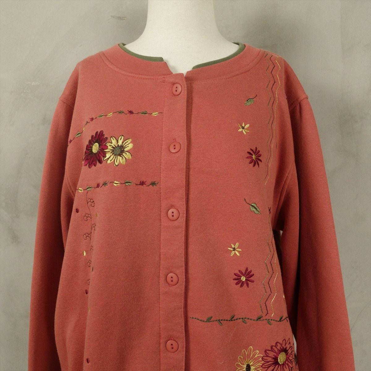古着 花柄刺繍 スウェット カーディガン