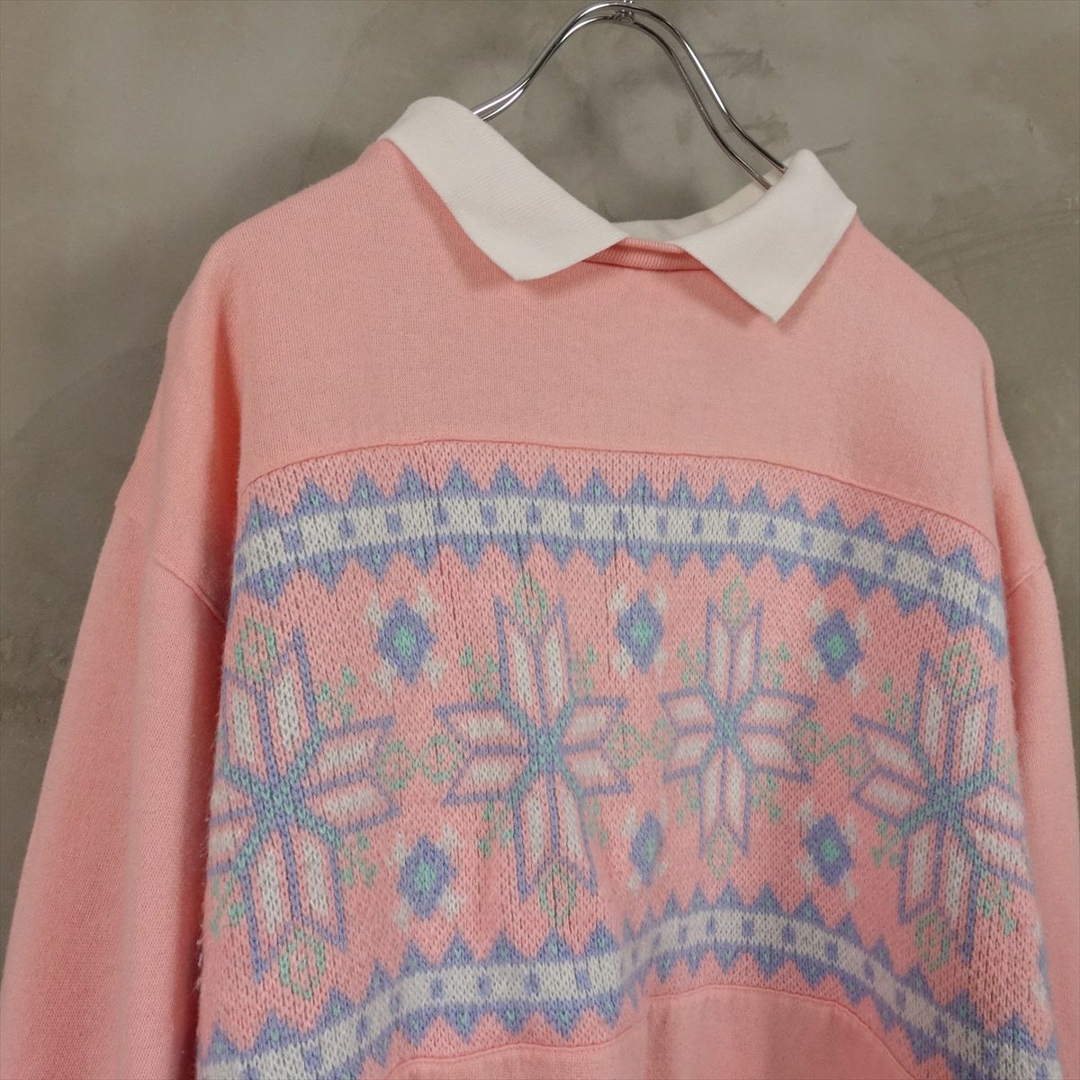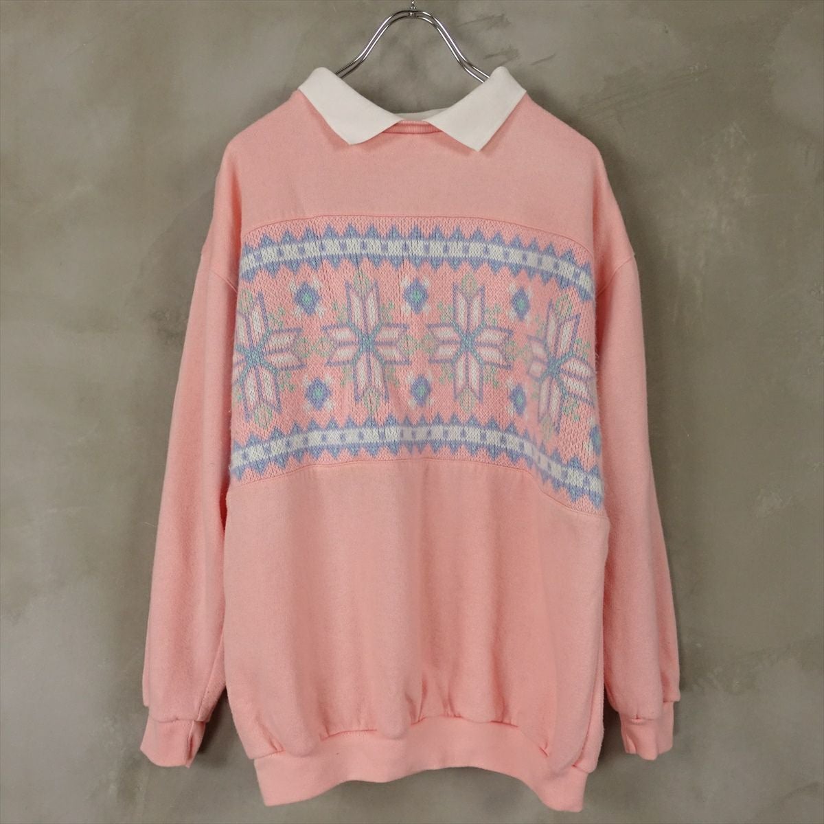 古着 襟付き ニット切り替え スウェット