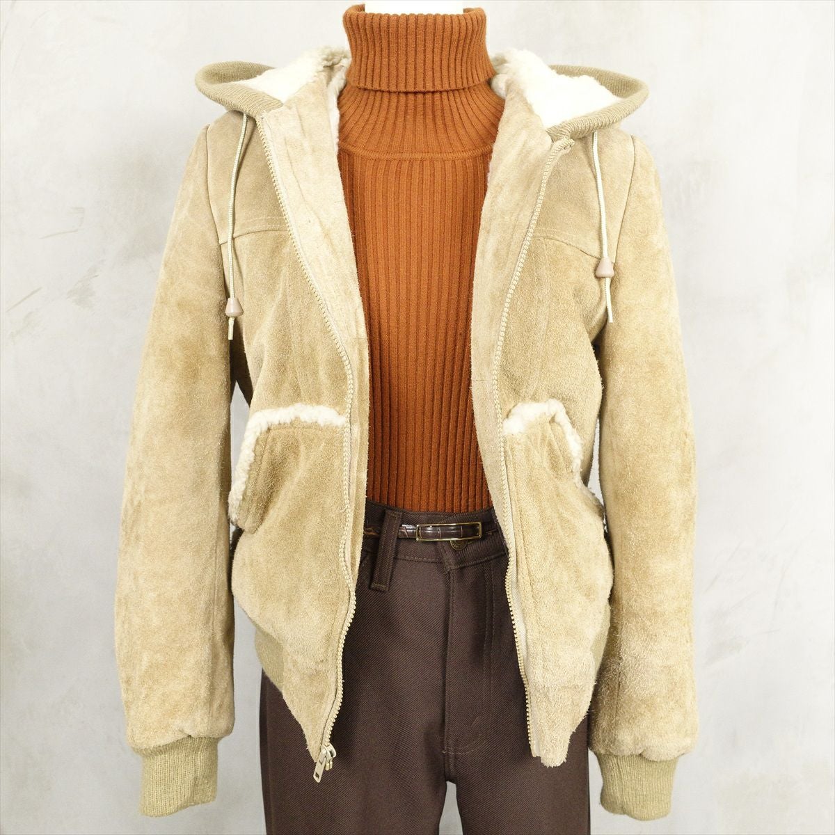 古着 フーデッド ボアライナー スウェードジャケット