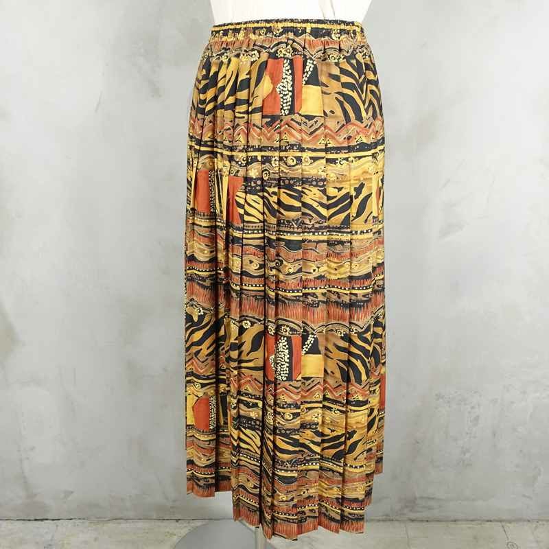 古着 LESLIEFAY バティック柄 プリーツ フレアスカート