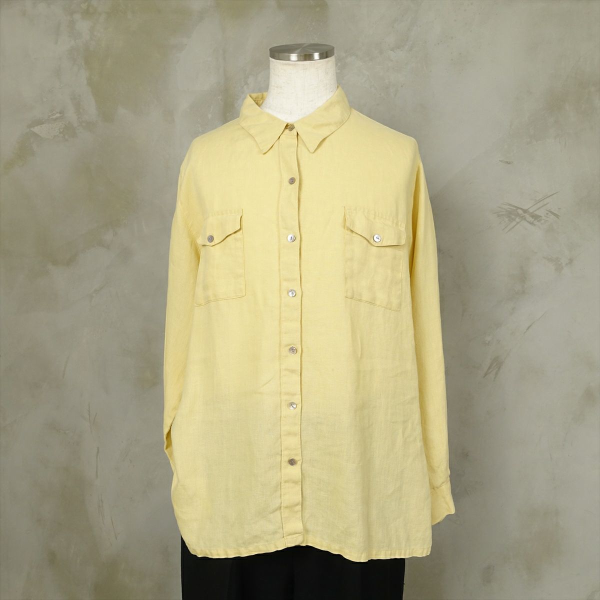 古着 リネン 無地 長袖シャツ