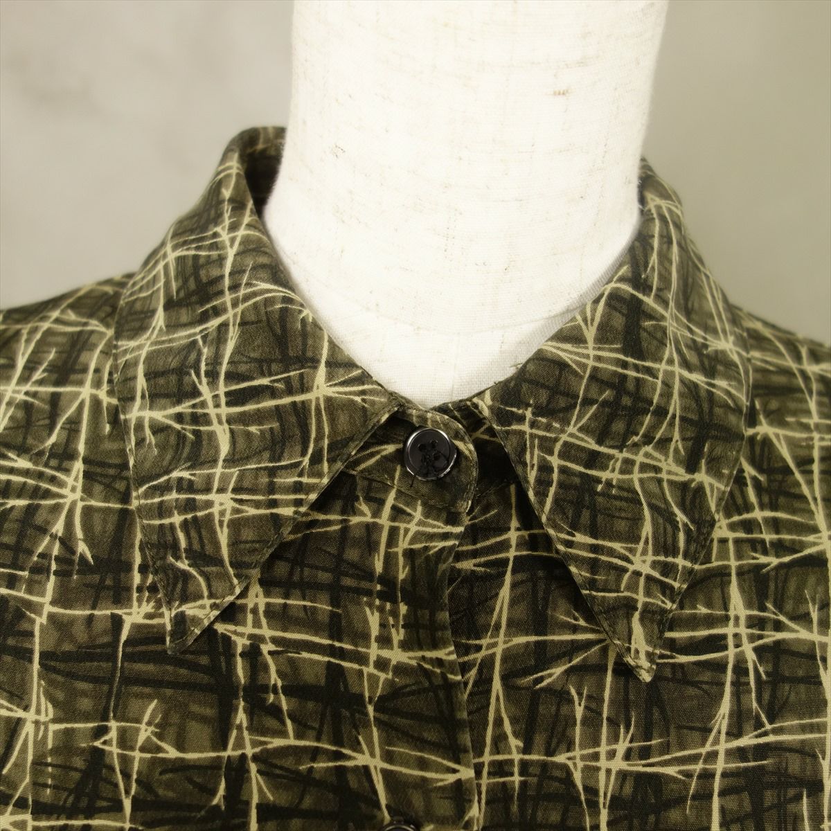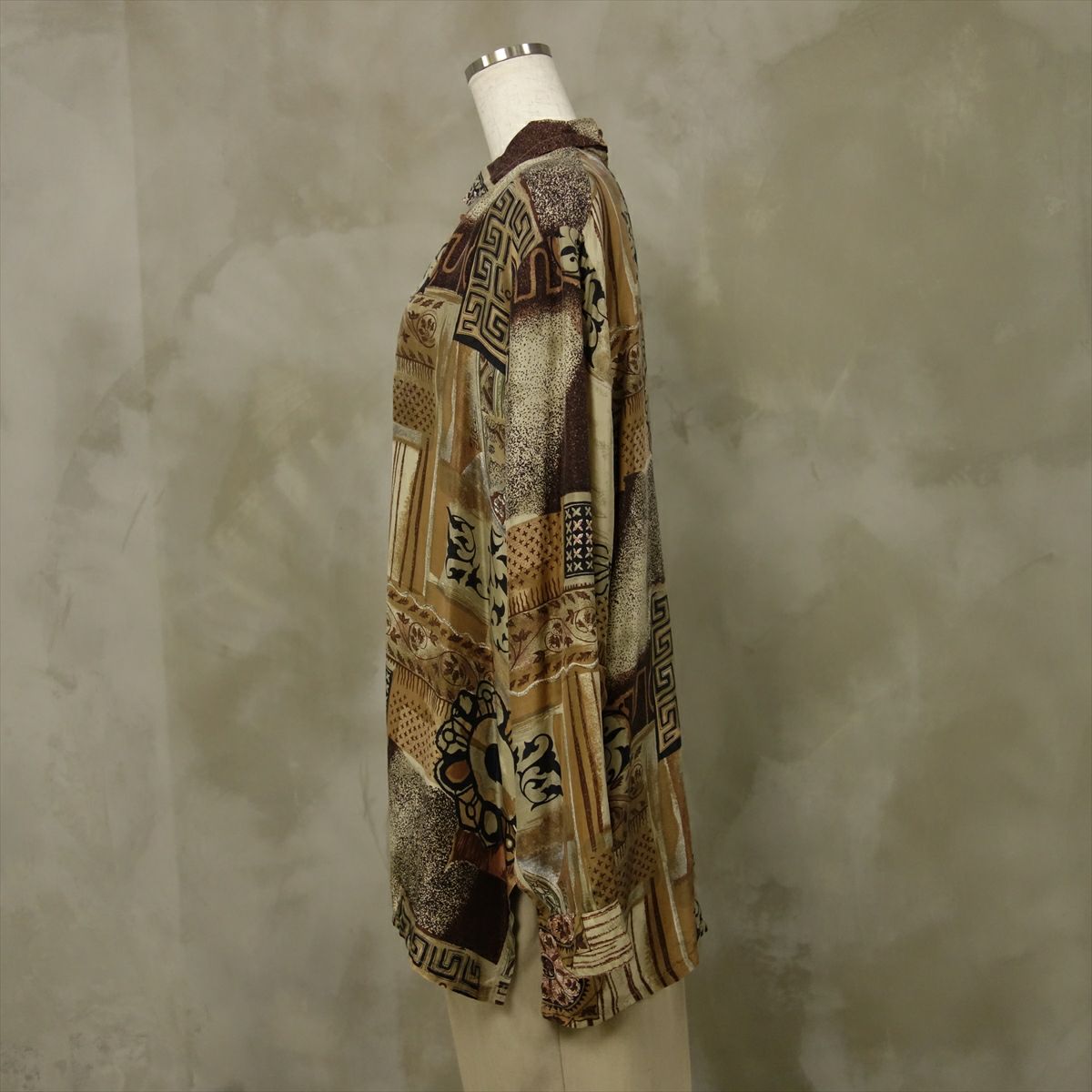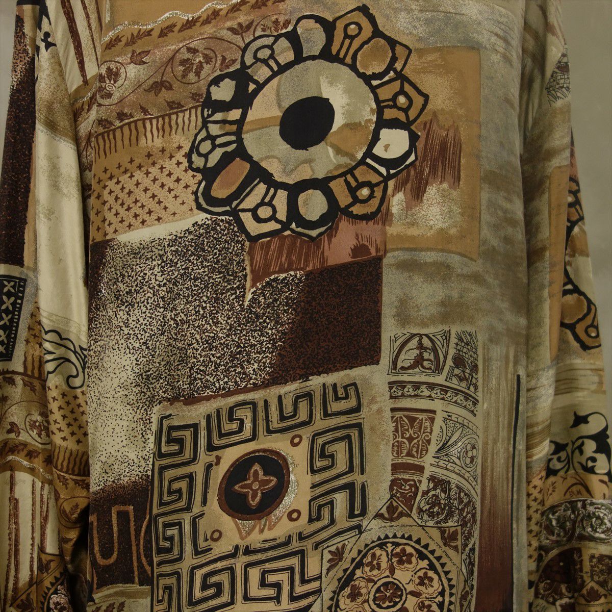 古着 総柄 シルク 長袖シャツ